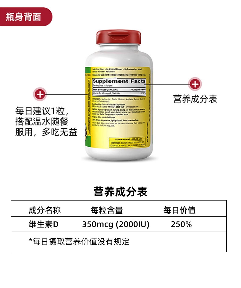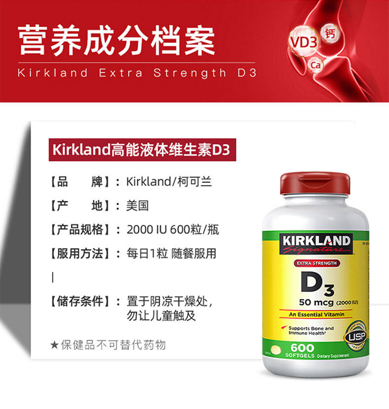 Таможенный склад!American Kirkland Kirkland Витамин D3 Витаминные капсулы 600 VD