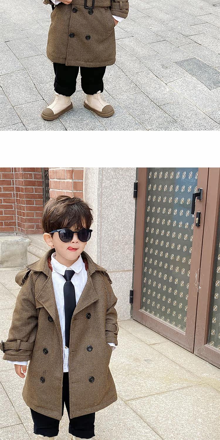 Пуховик для мальчиков, детская мужская флисовая длинная куртка, коллекция 2023, в британском стиле, подходит для подростков, средней длины