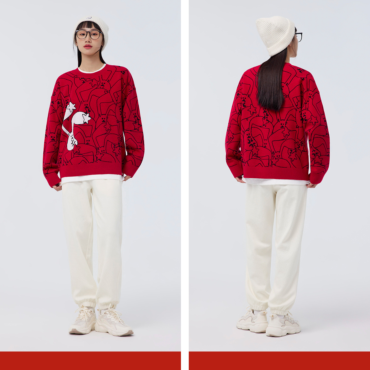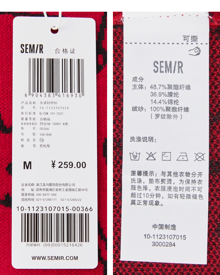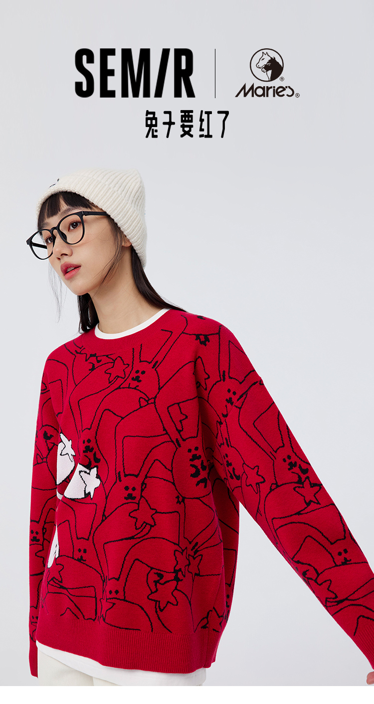 Semir, трикотажный красный весенний атмосферный свитер, свободный крой