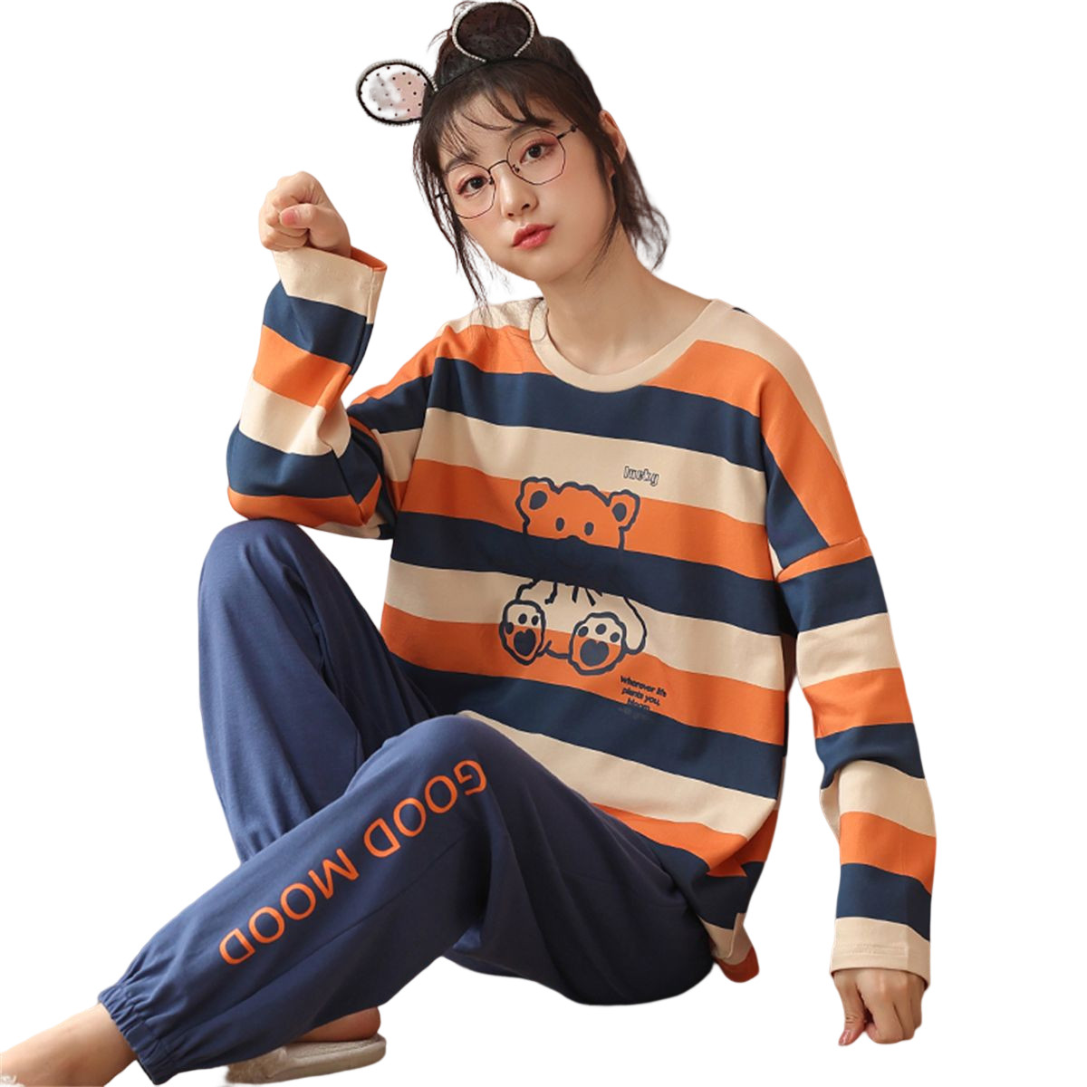 Демисезонная пижама, хлопковый лонгслив, штаны для отдыха для школьников, спортивный комплект, простой и элегантный дизайн