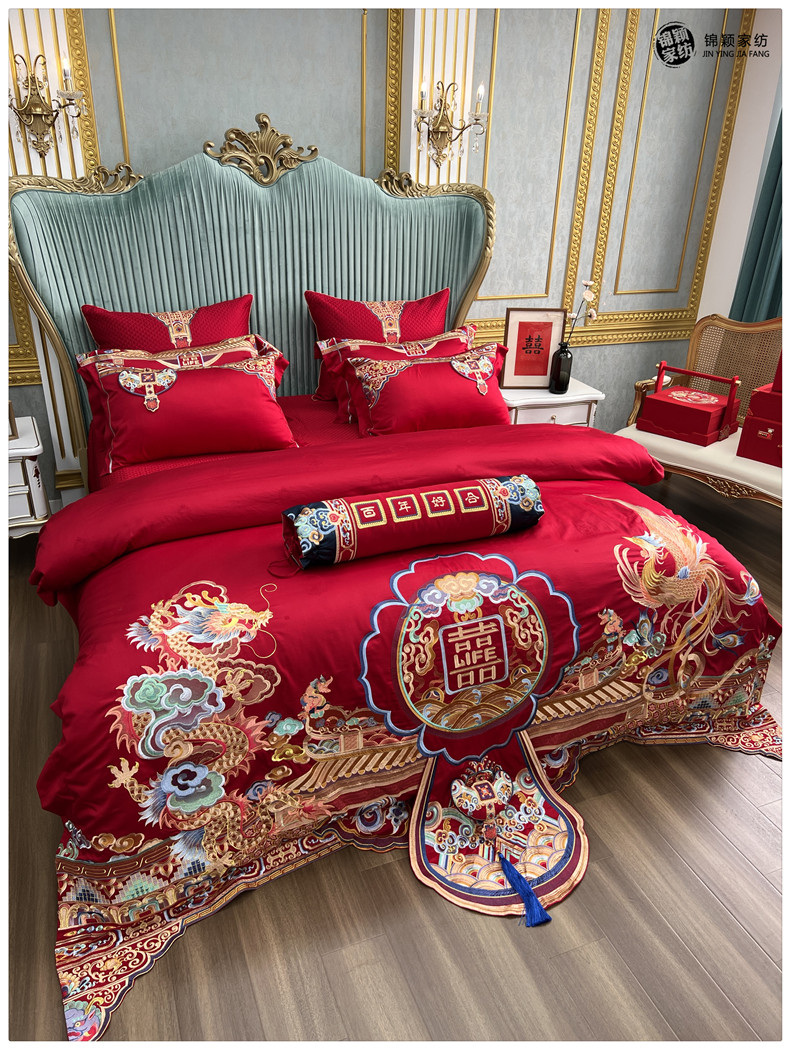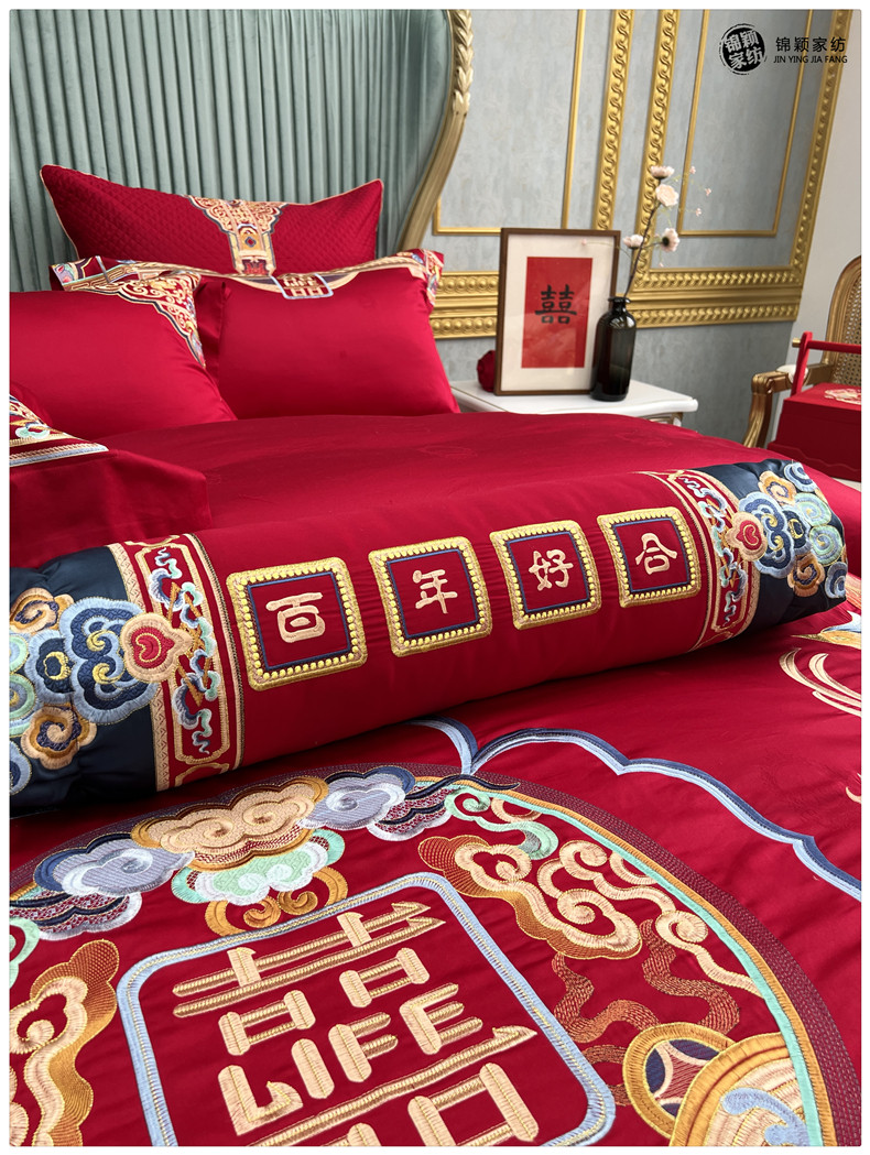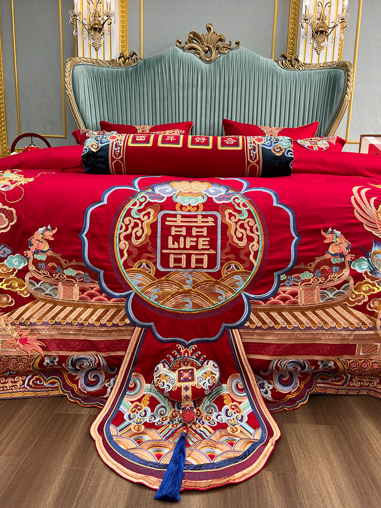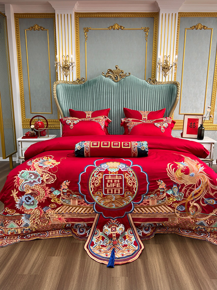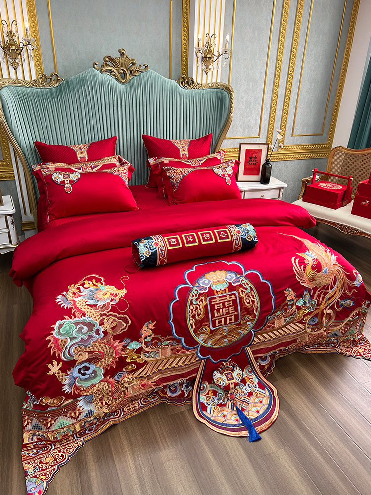 Элитный хлопковый комплект, красное хлопковое одеяло, пододеяльник, 100 шт, 4 предмета, с вышивкой, постельные принадлежности