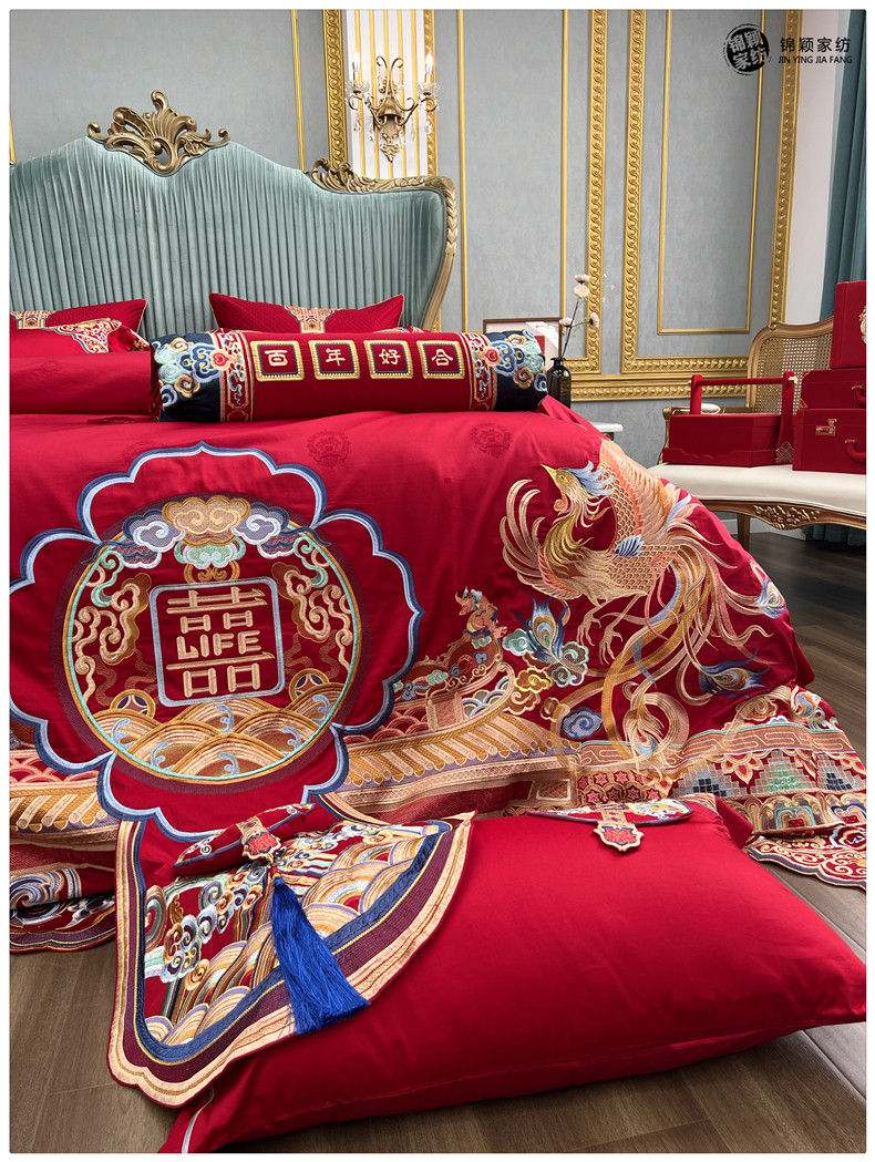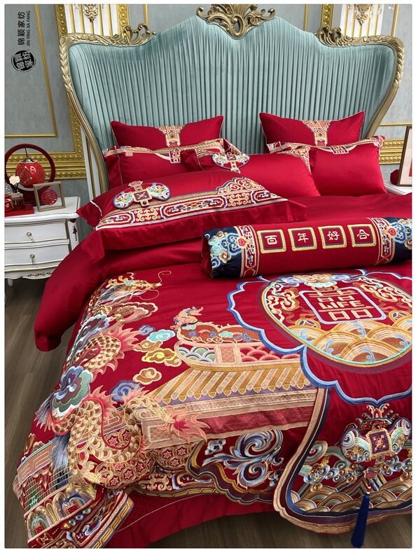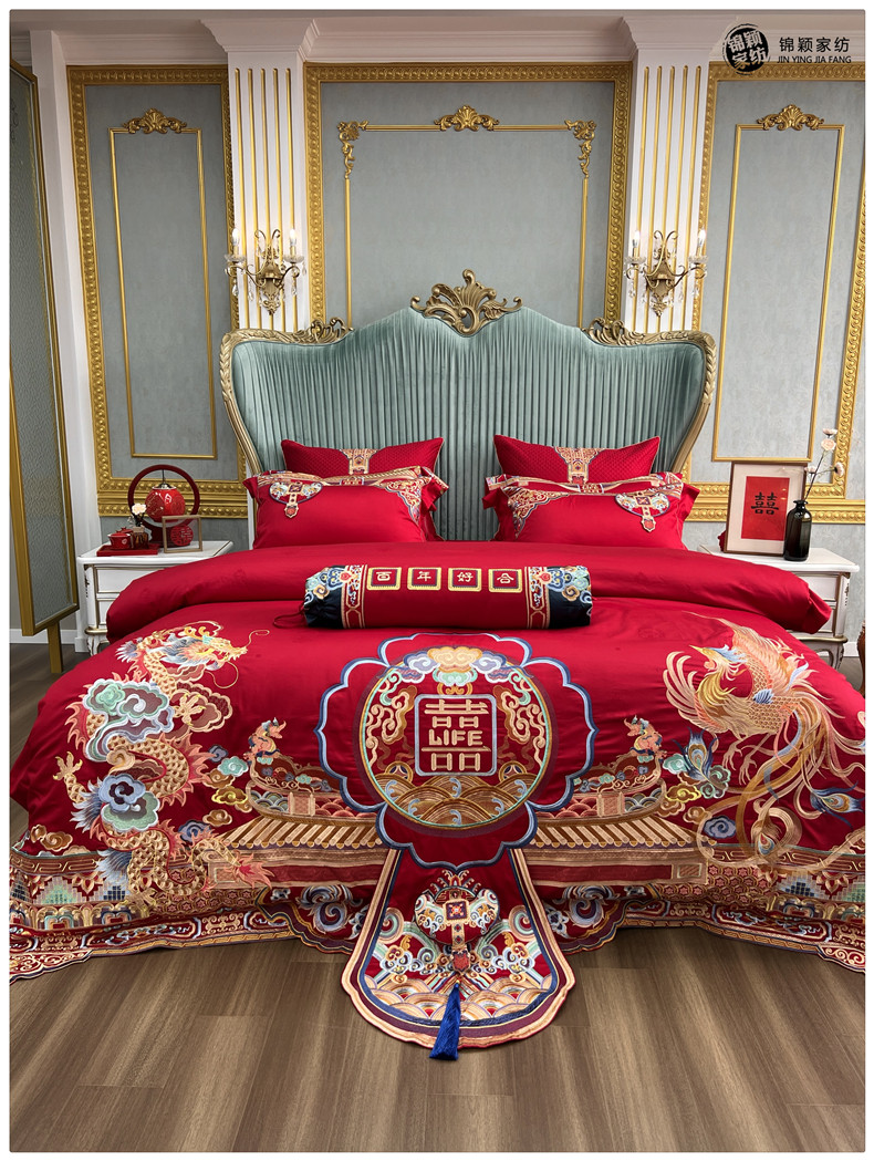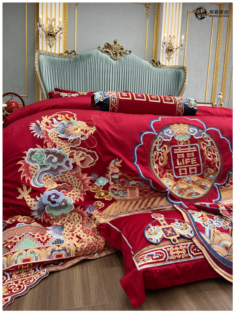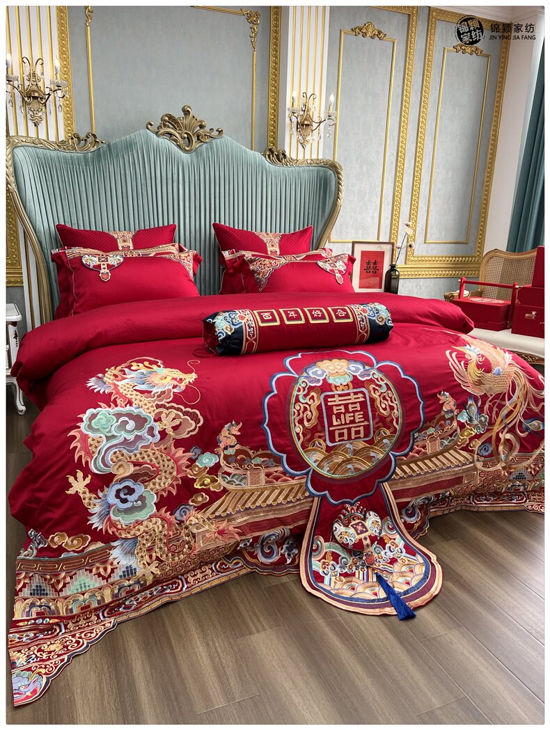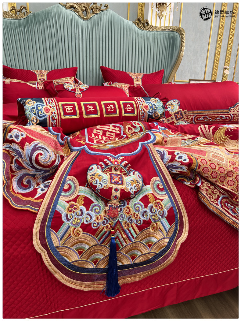 Элитный хлопковый комплект, красное хлопковое одеяло, пододеяльник, 100 шт, 4 предмета, с вышивкой, постельные принадлежности