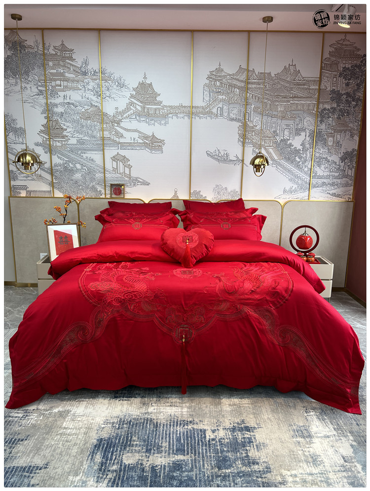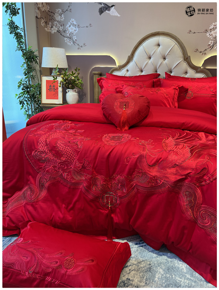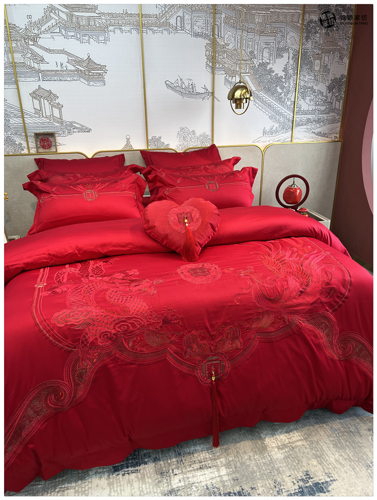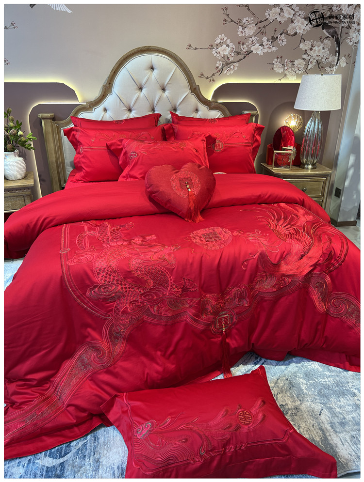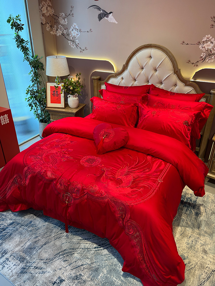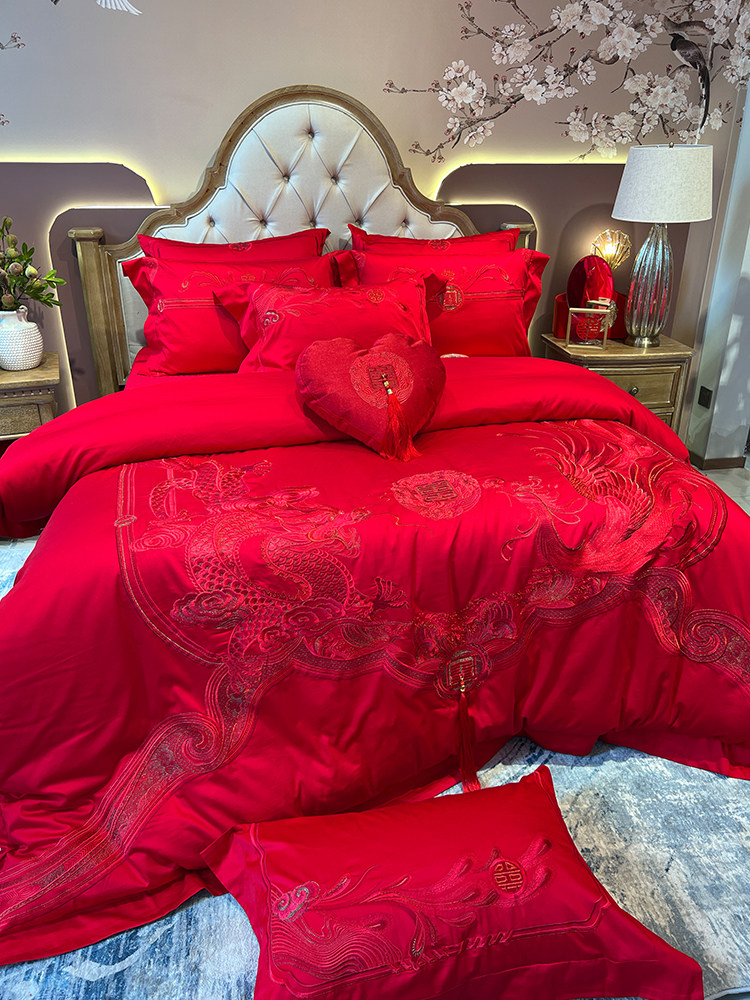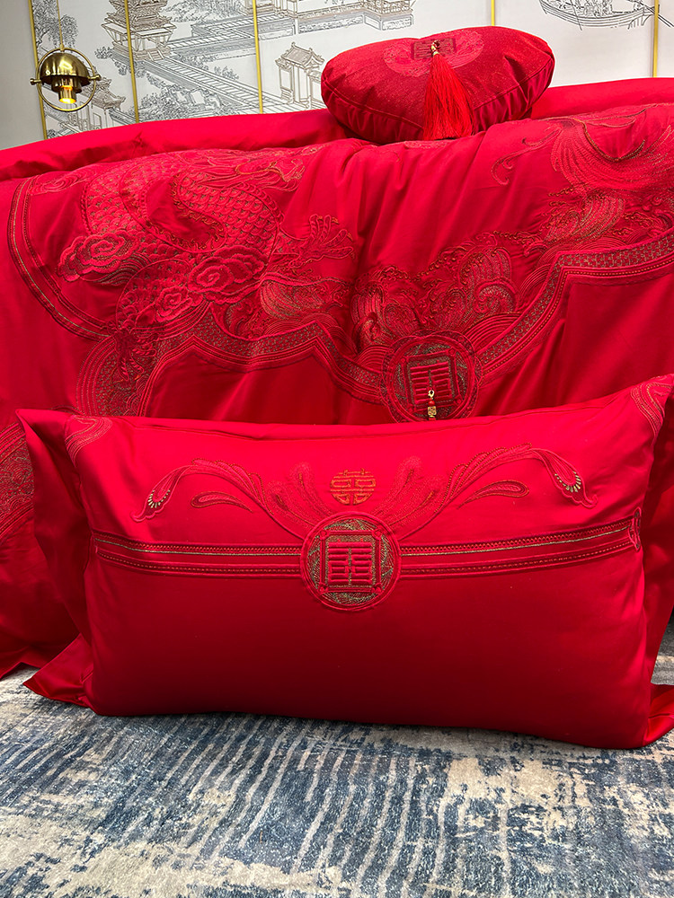 Элитный красный бархатный комплект, хлопковый пододеяльник, 100 шт, 4 предмета, китайский стиль, с вышивкой, постельные принадлежности
