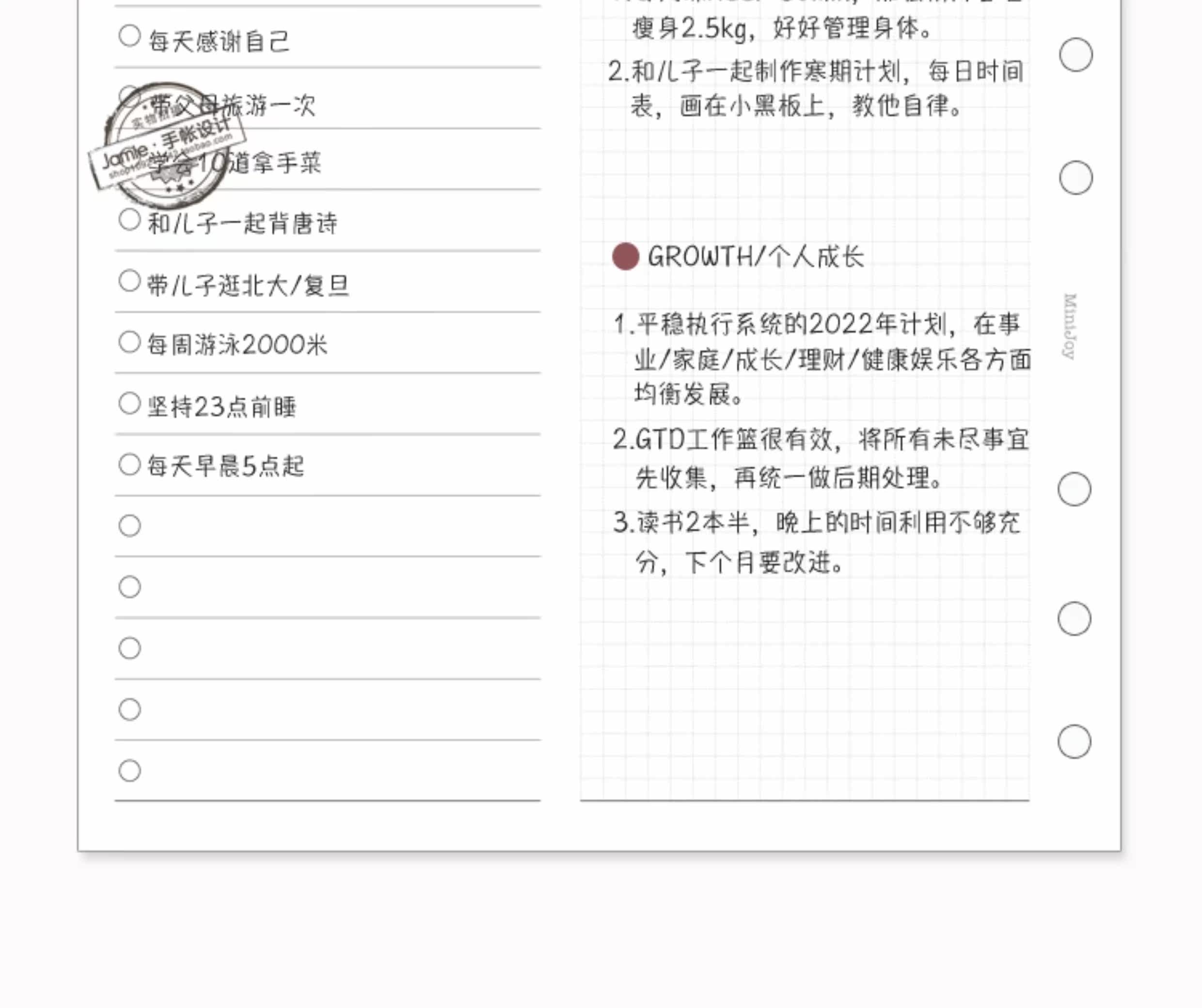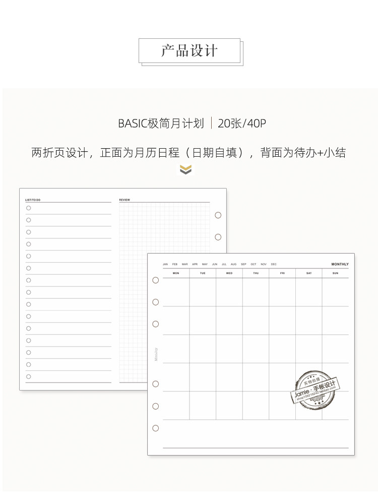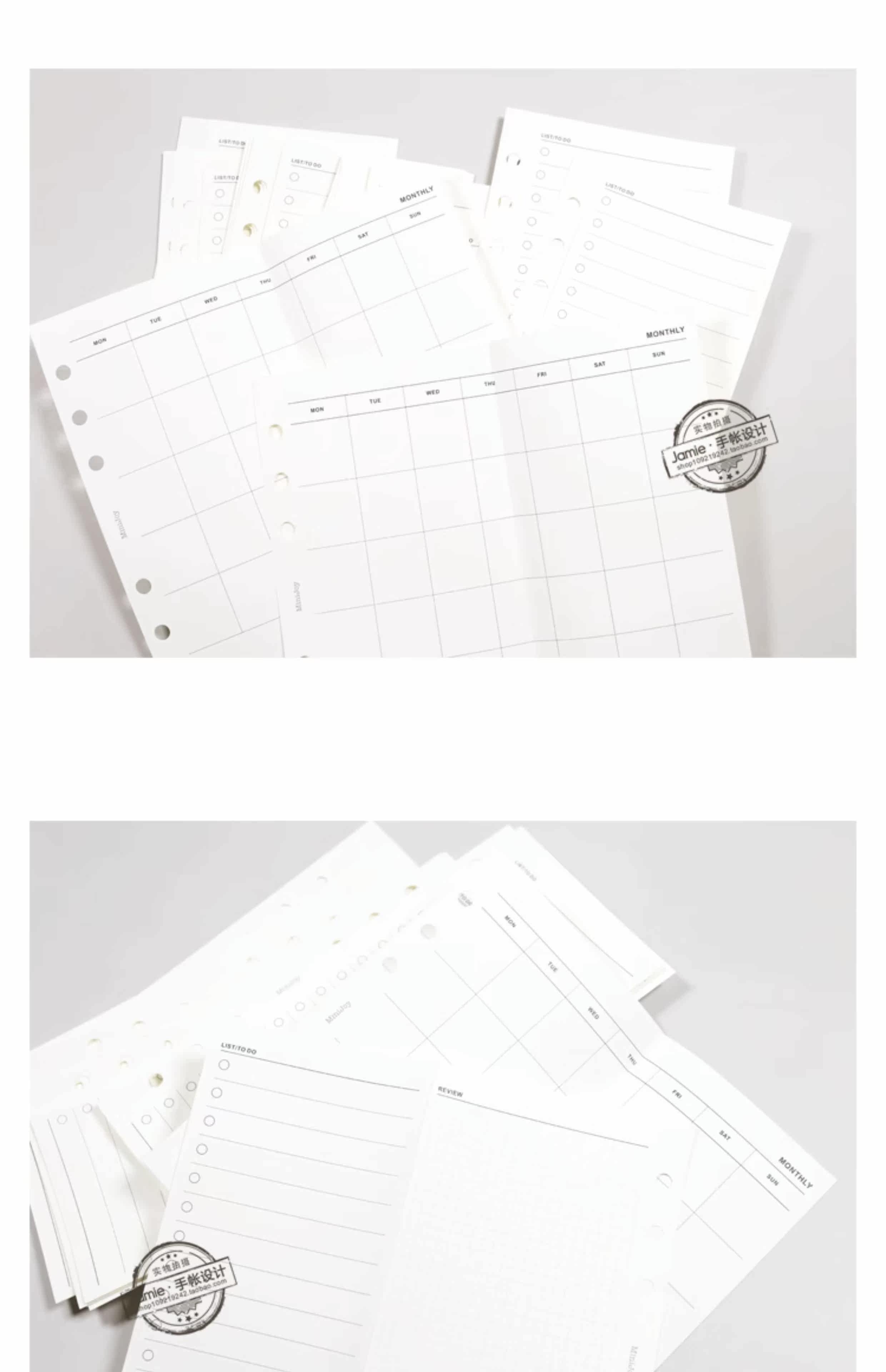 JN手帐 Основные минималистские справочники в прямом эфире Страница A6A План План Две сложенные страницы для 20 экземпляров основных ежедневных страниц