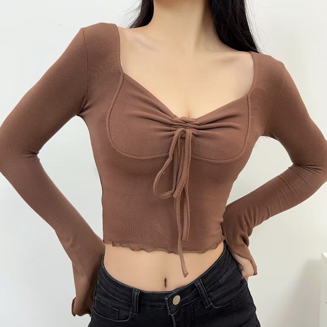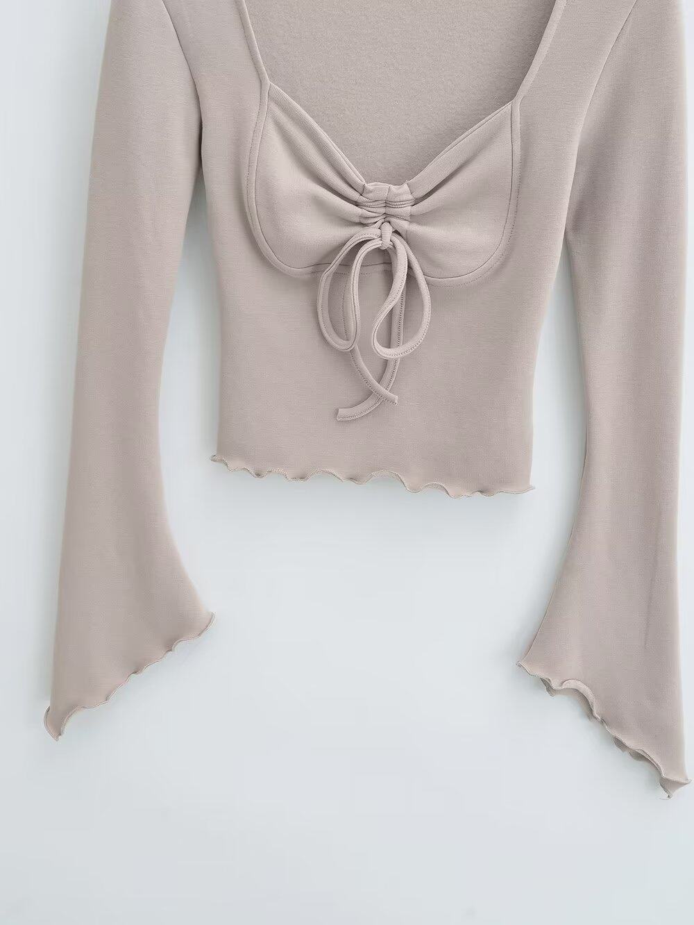 Брендовый флисовый базовый приятный телу сексуальный мегафон, лонгслив, европейский стиль, новая коллекция, на шнурках
