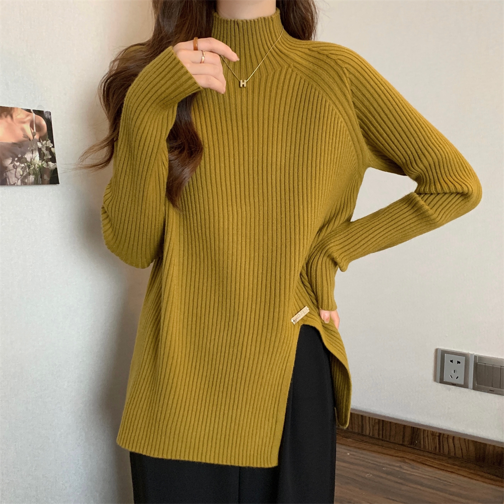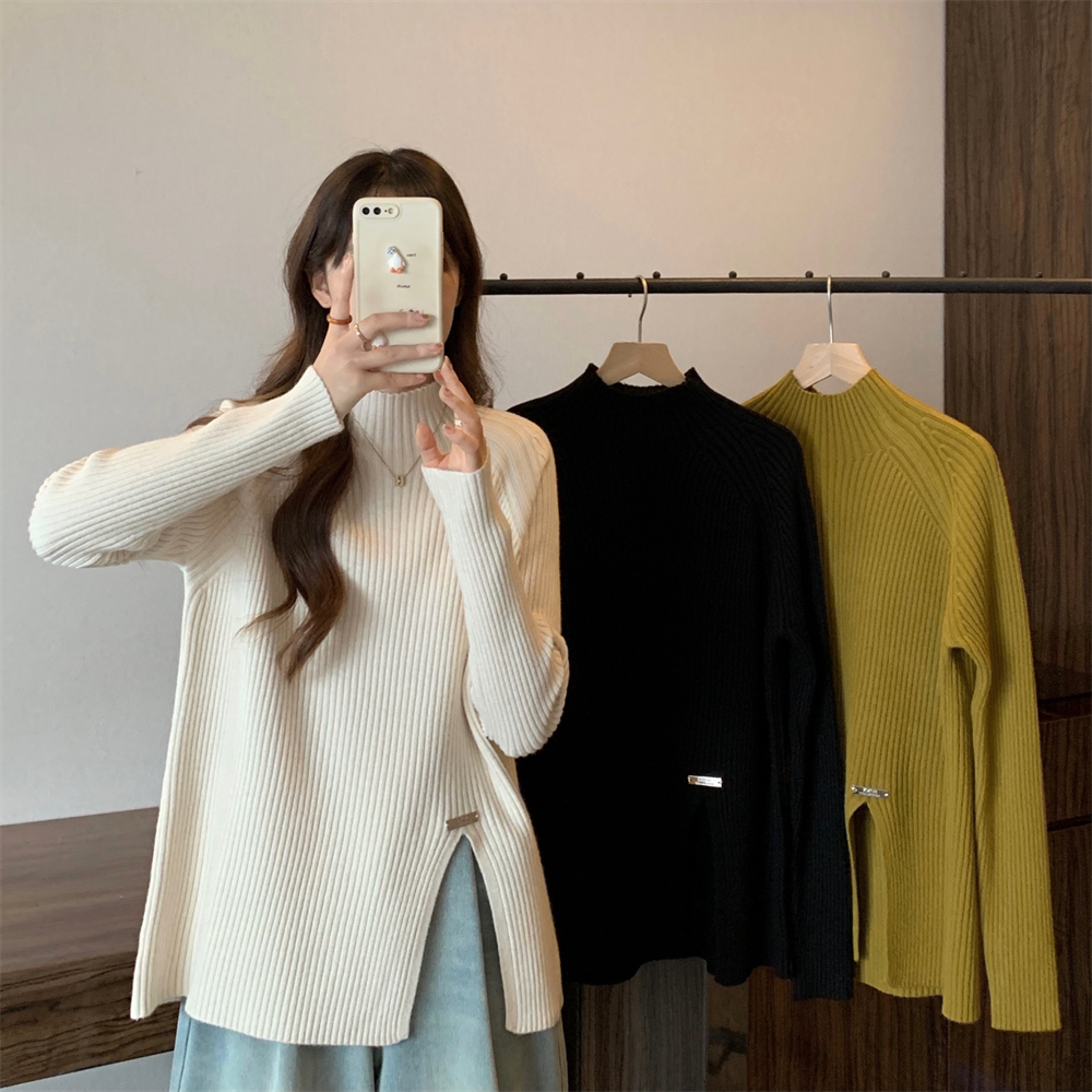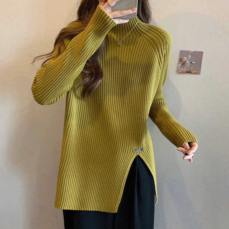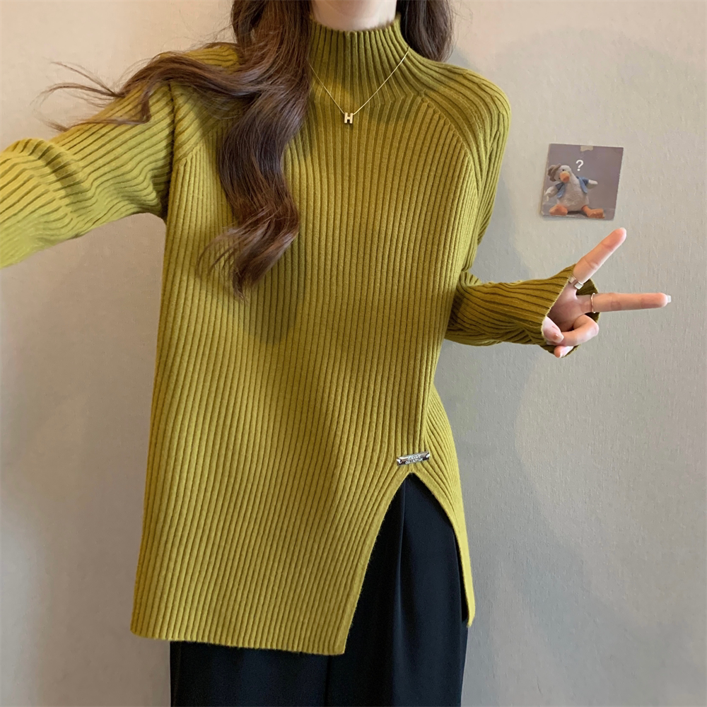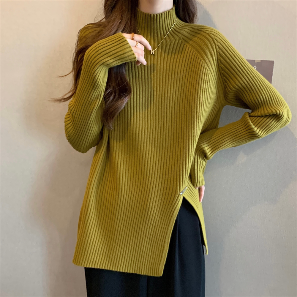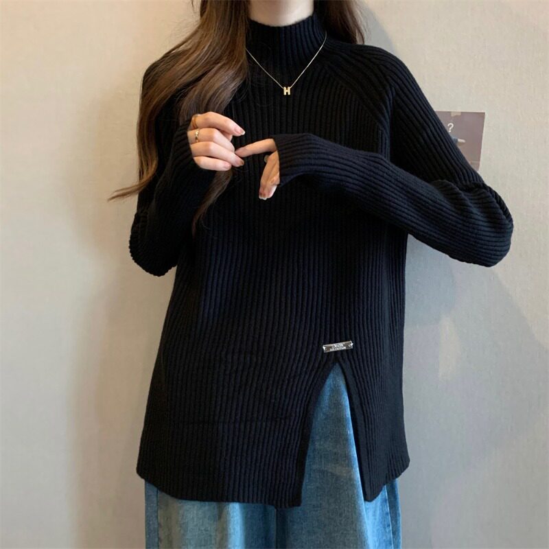 Трикотажный демисезонный дизайнерский базовый приятный телу свитер, большой размер, высокий воротник, тренд сезона, яркий броский стиль