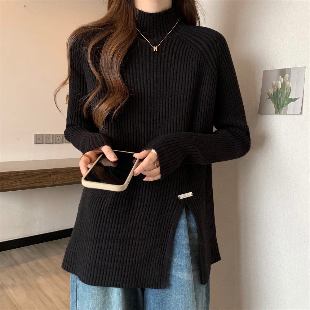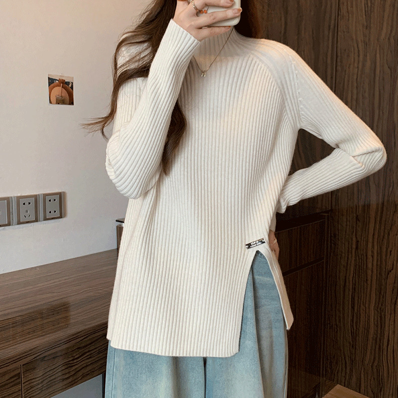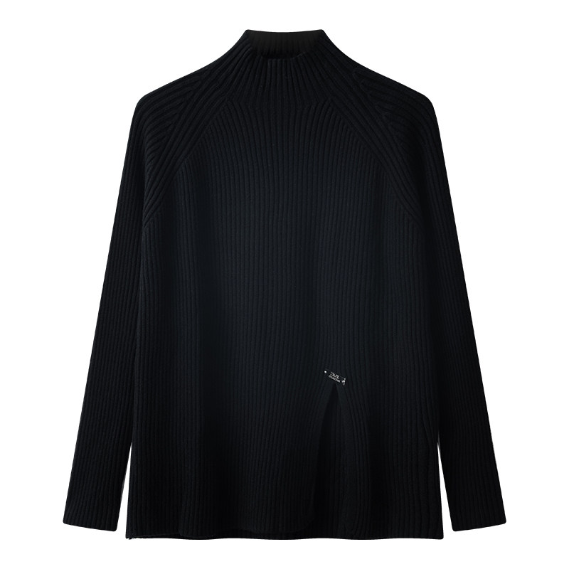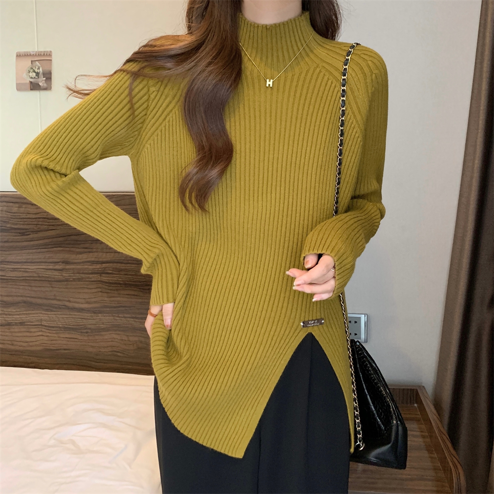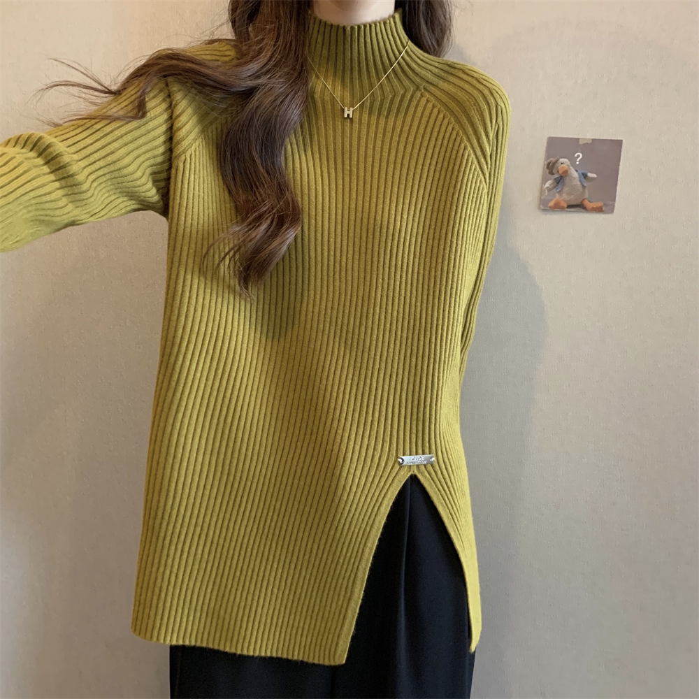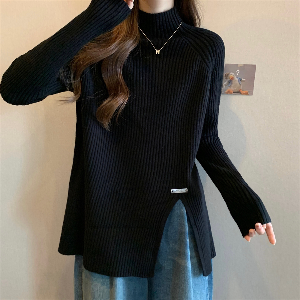 Трикотажный демисезонный дизайнерский базовый приятный телу свитер, большой размер, высокий воротник, тренд сезона, яркий броский стиль