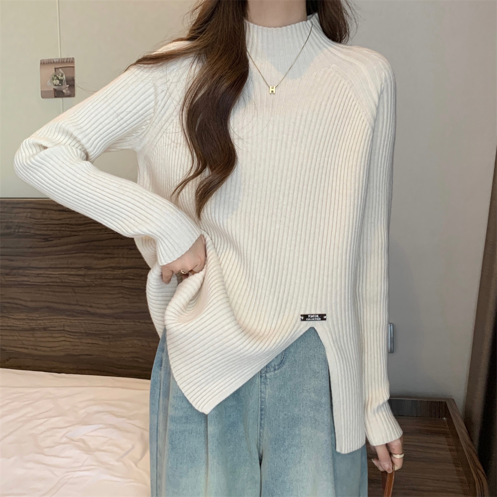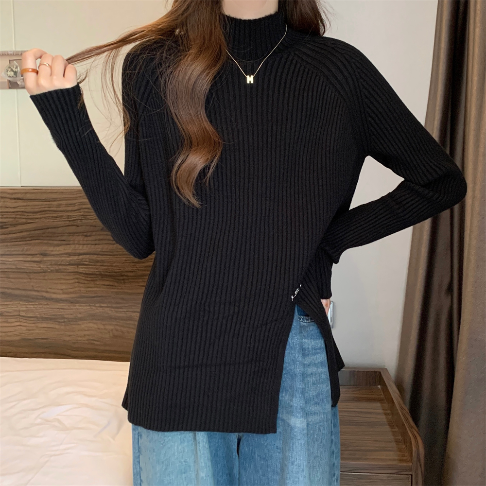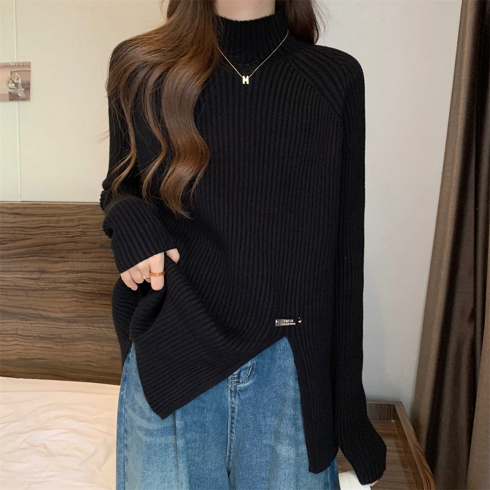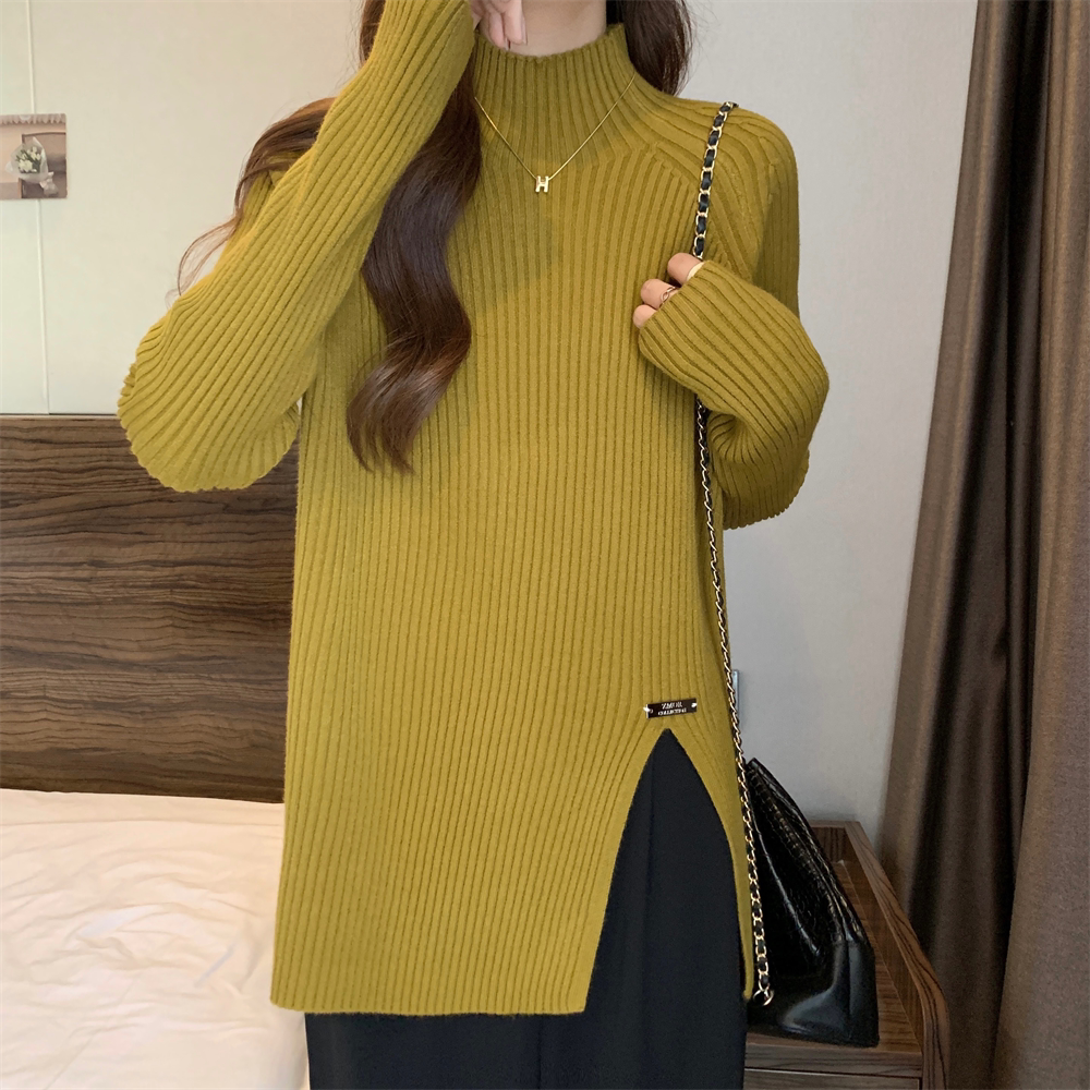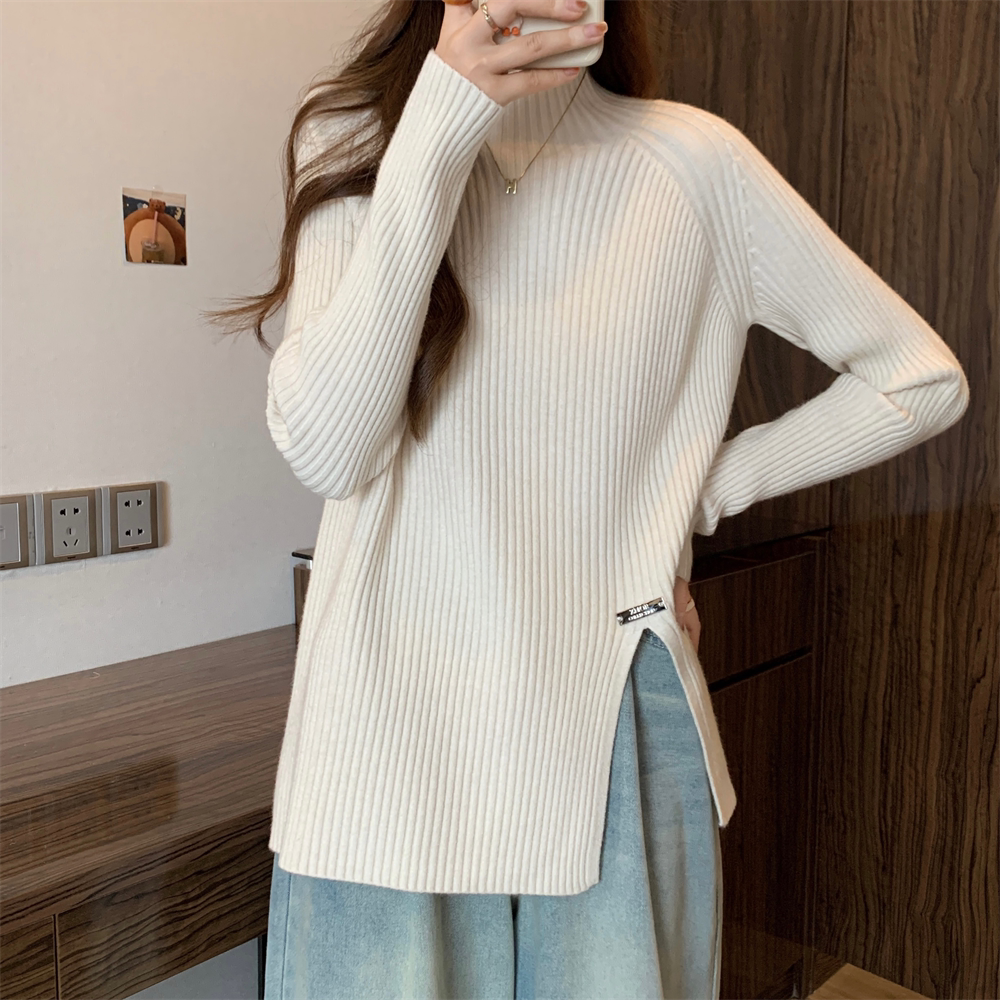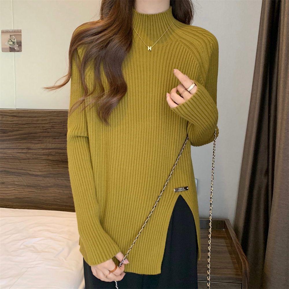 Трикотажный демисезонный дизайнерский базовый приятный телу свитер, большой размер, высокий воротник, тренд сезона, яркий броский стиль