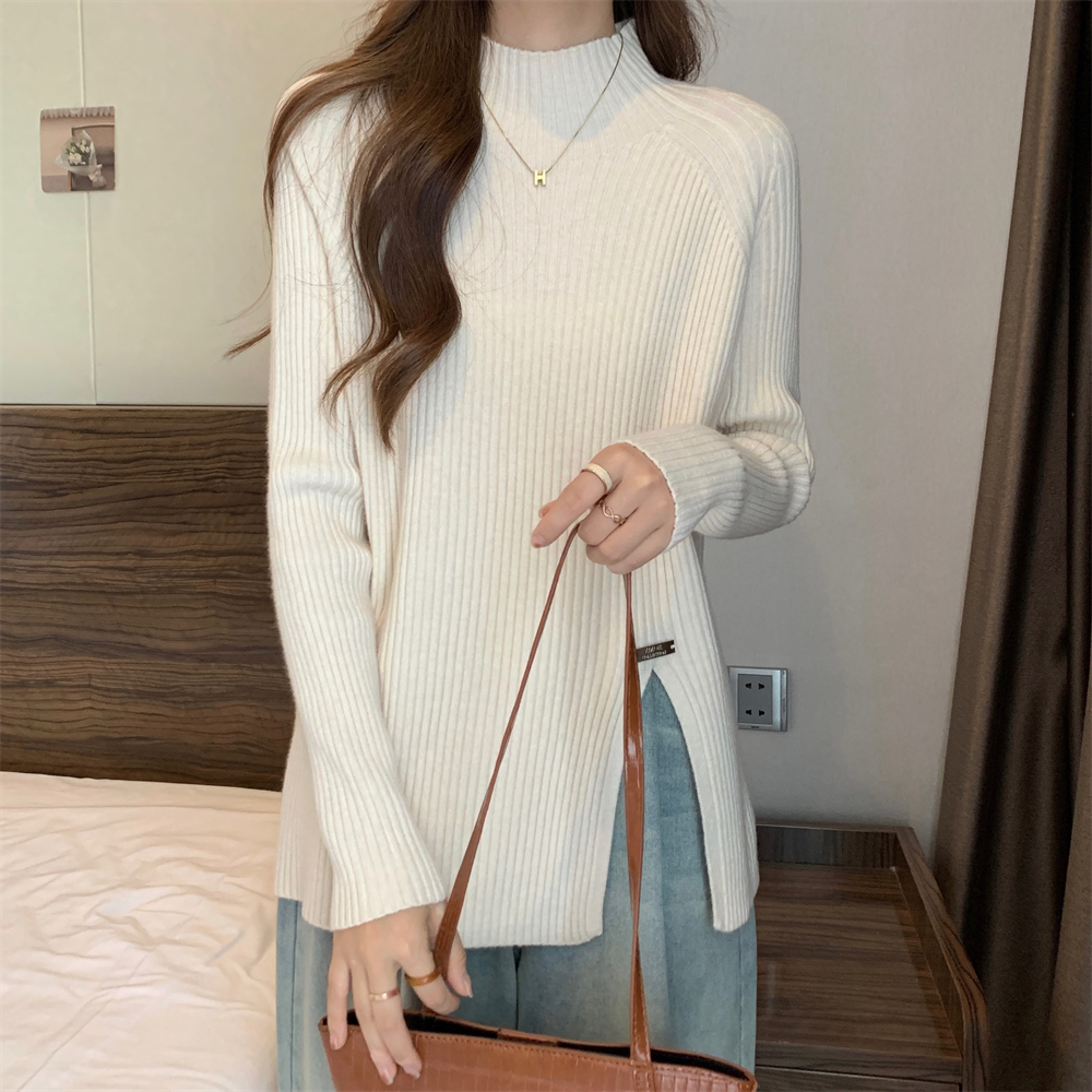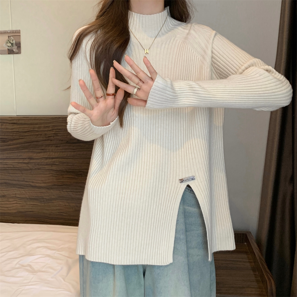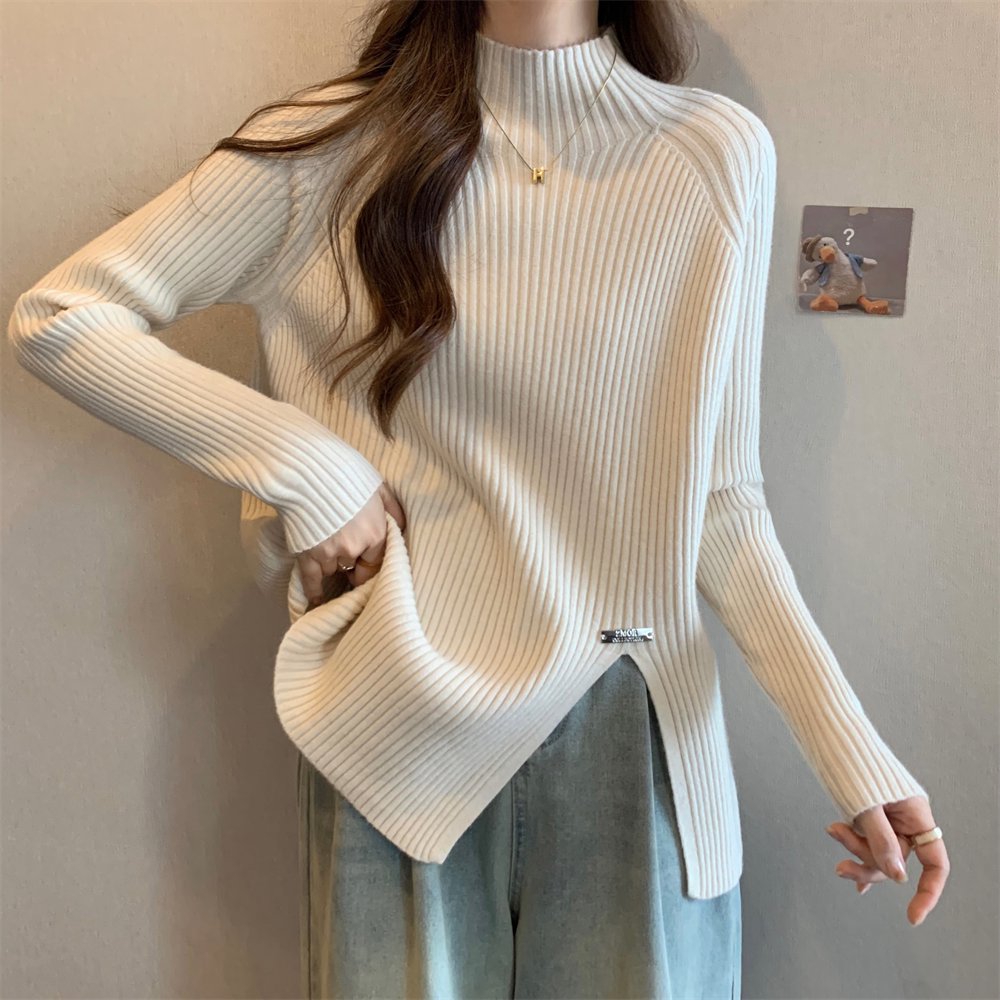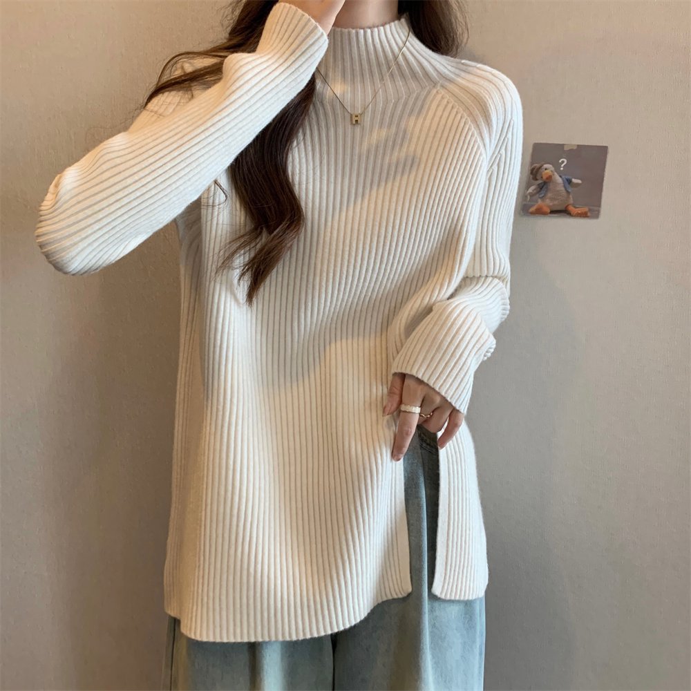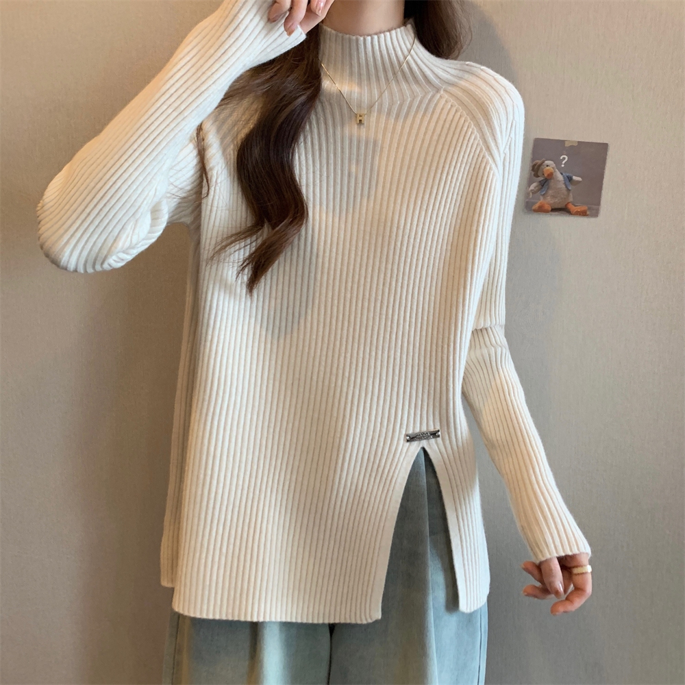 Трикотажный демисезонный дизайнерский базовый приятный телу свитер, большой размер, высокий воротник, тренд сезона, яркий броский стиль