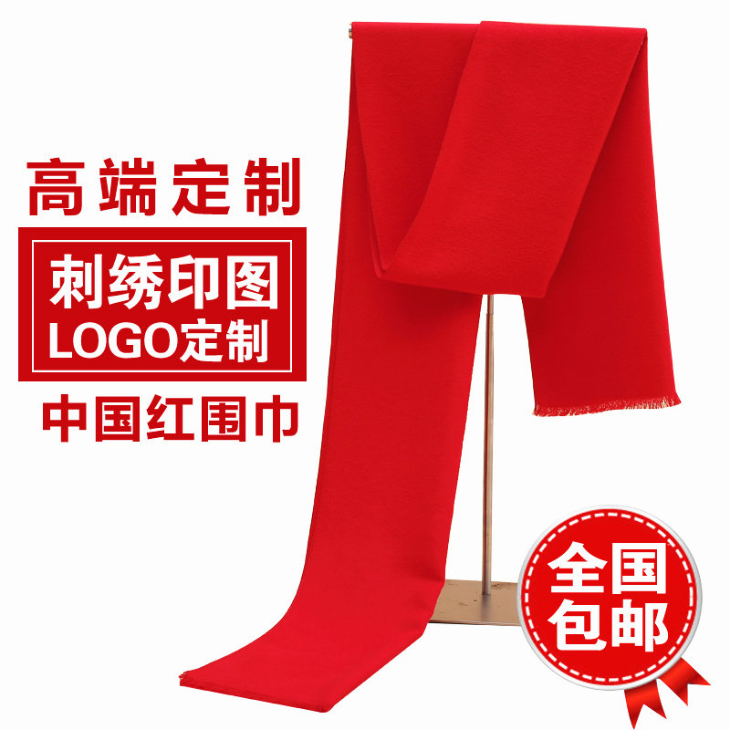 Красный шарф, делается под заказ, услуга «вышивка логотипа»