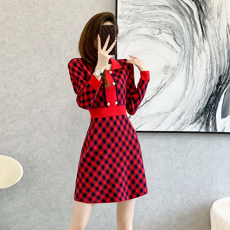 Красный цветной зимний свитер, платье, юбка, французский стиль, подходит для подростков