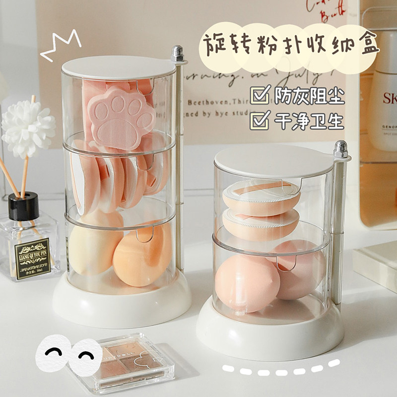 Спонж, коробка для хранения, настольная рассыпчатая пудра, ватные диски, акриловая прозрачная косметическая губка