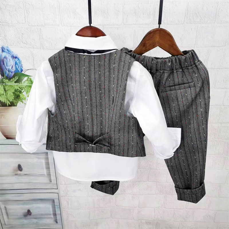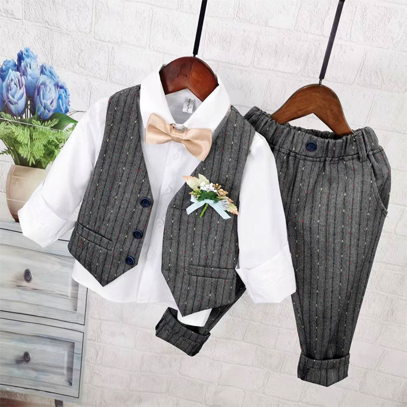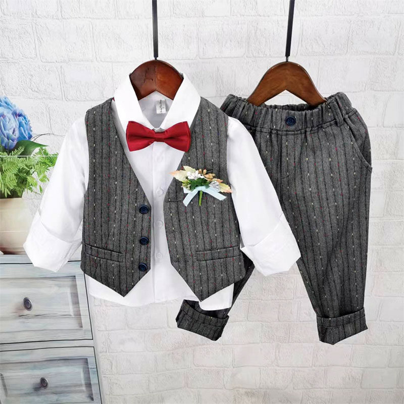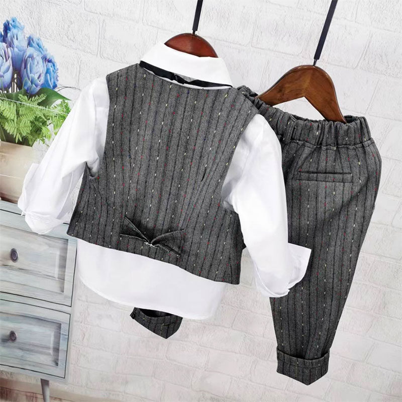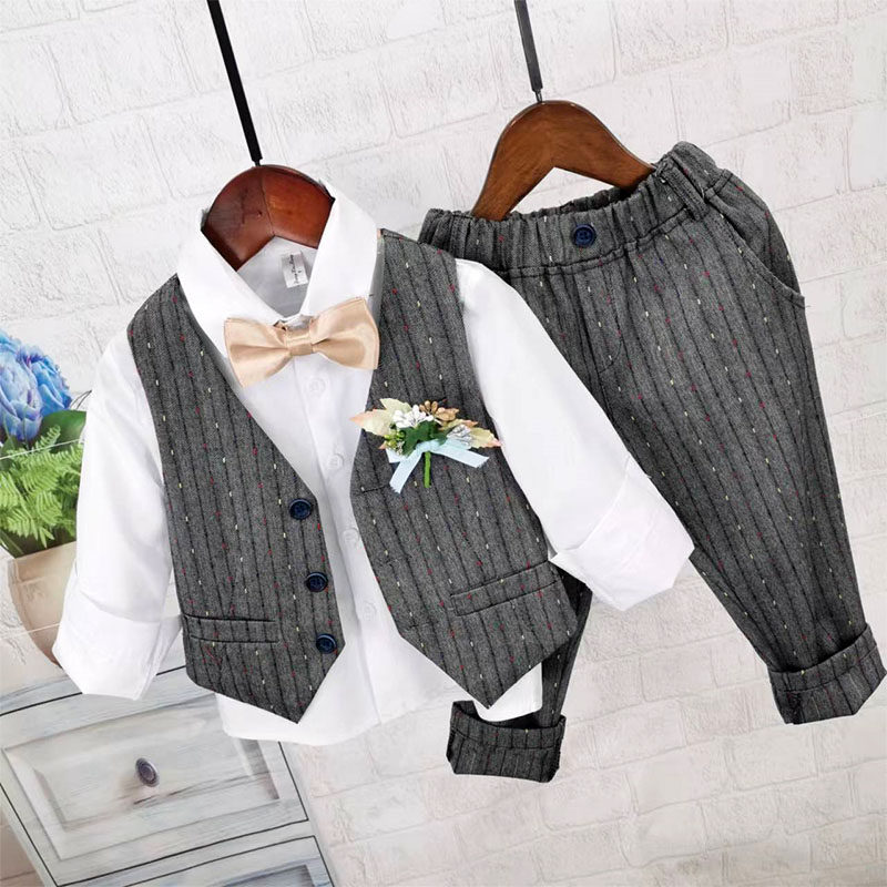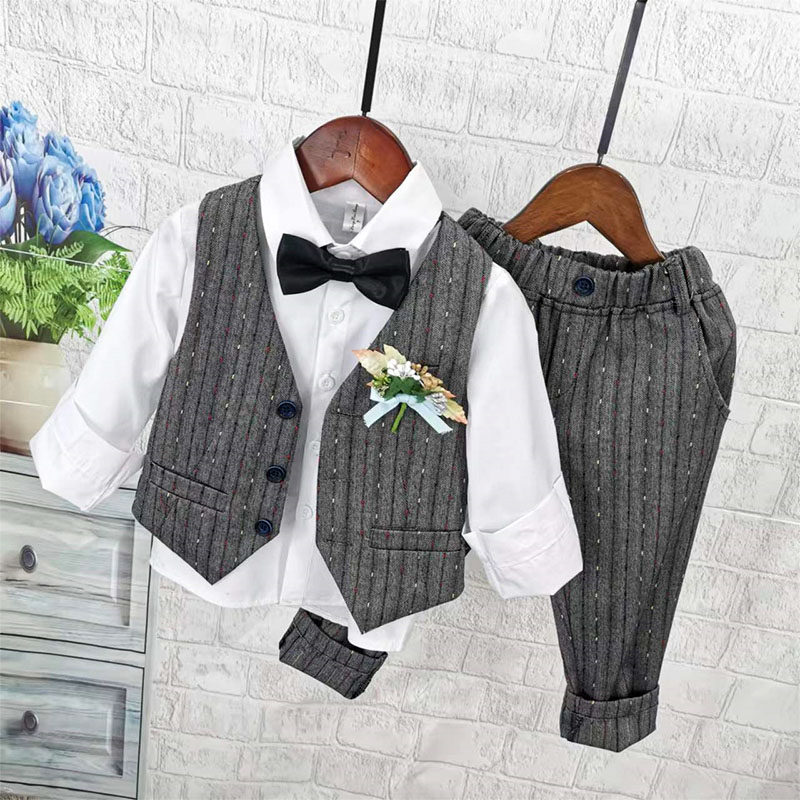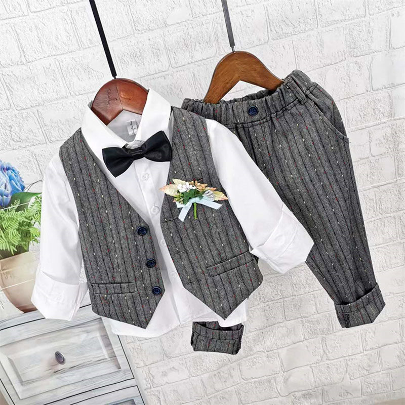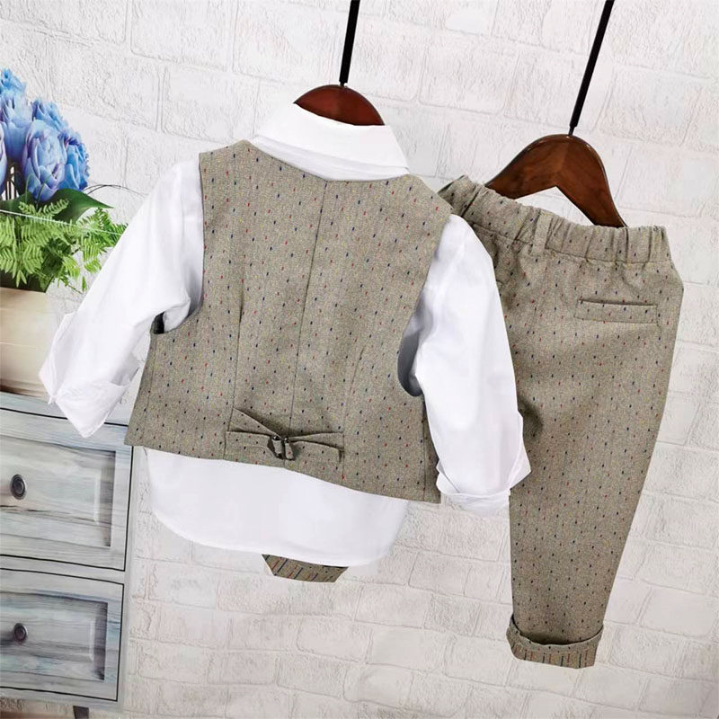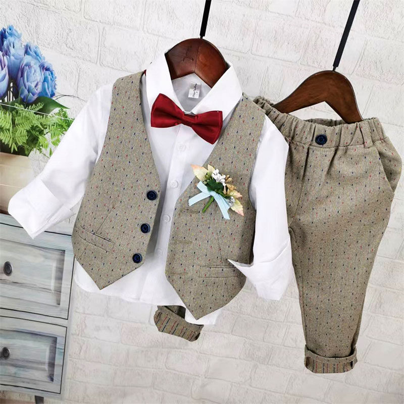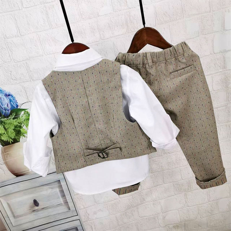 Осенний жилет для мальчиков, рубашка, детский комплект, 3 предмета, детская одежда