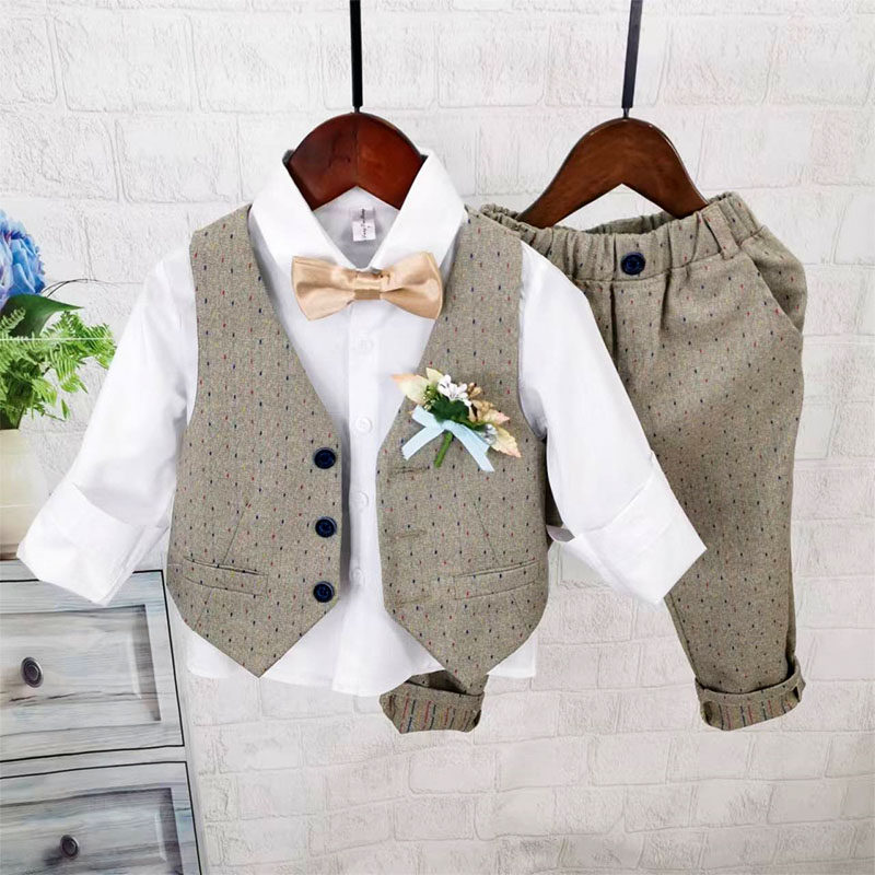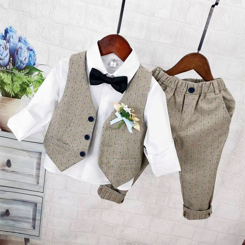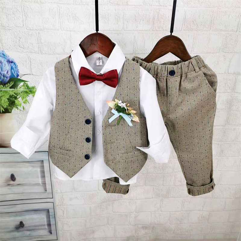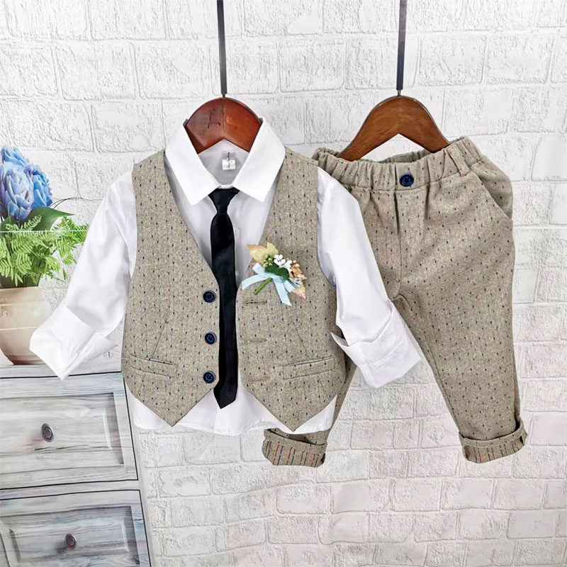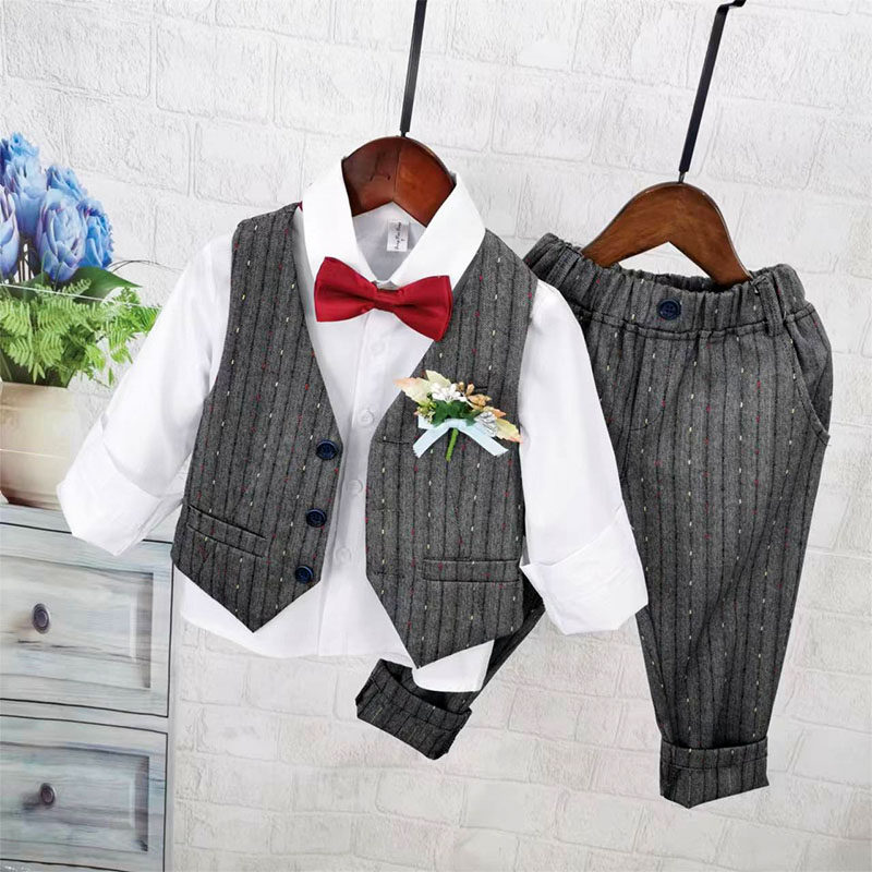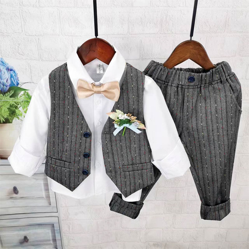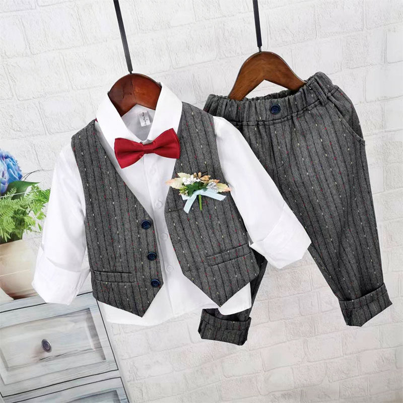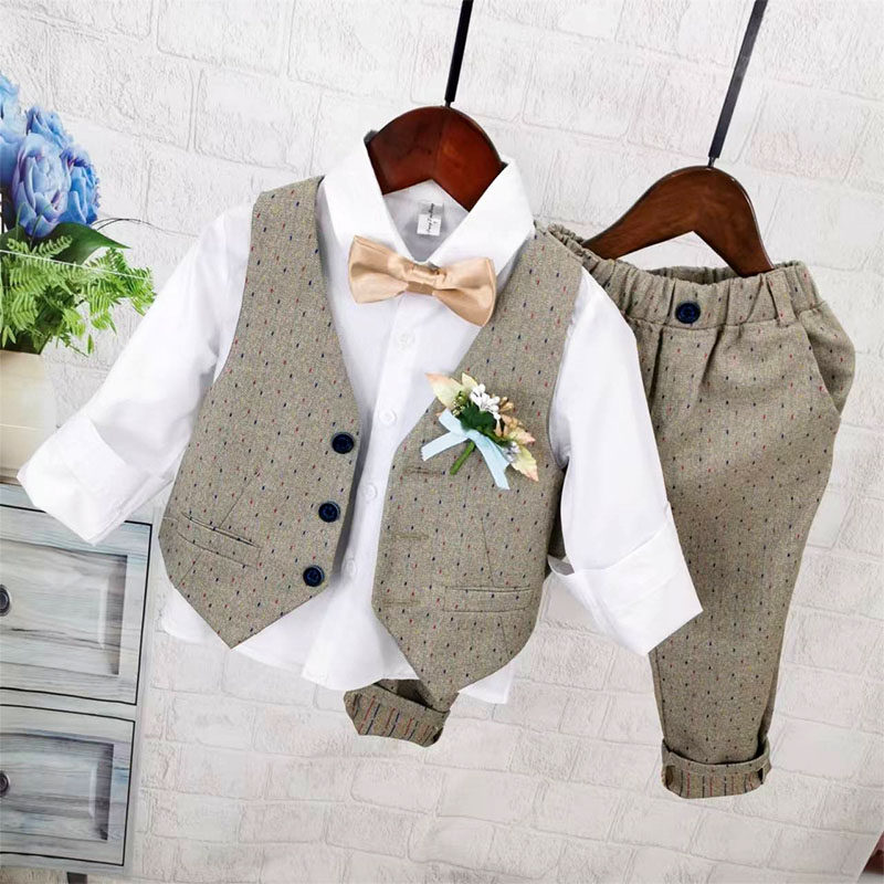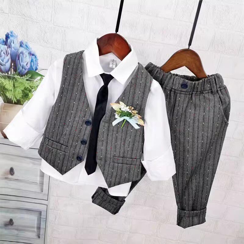 Осенний жилет для мальчиков, рубашка, детский комплект, 3 предмета, детская одежда
