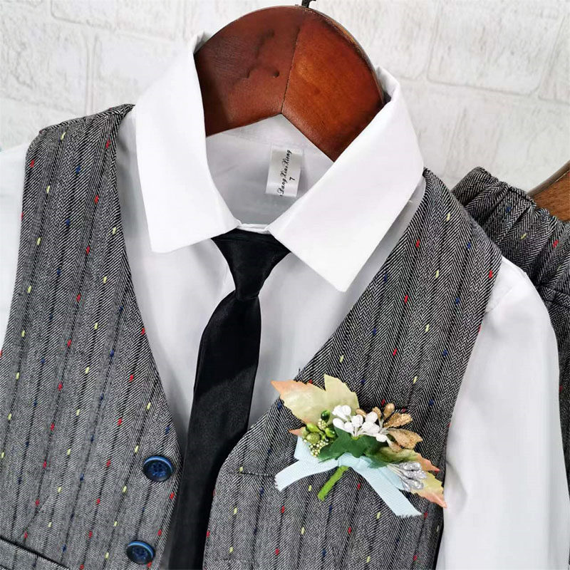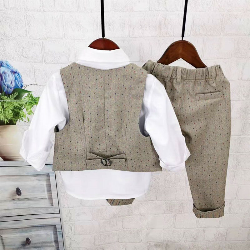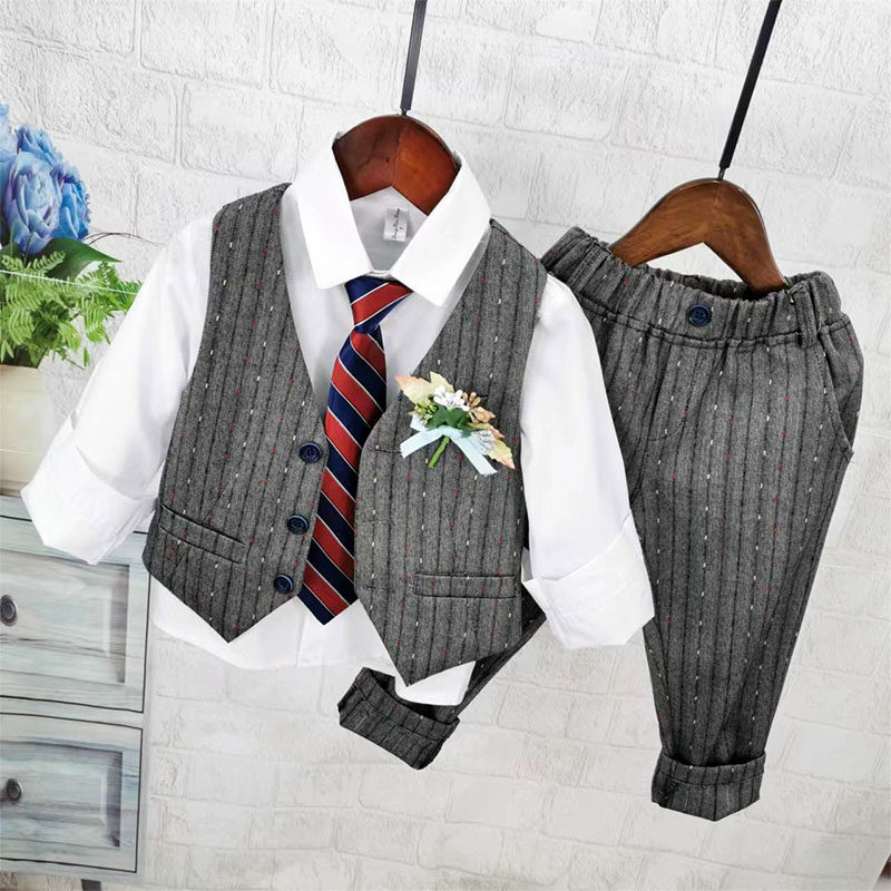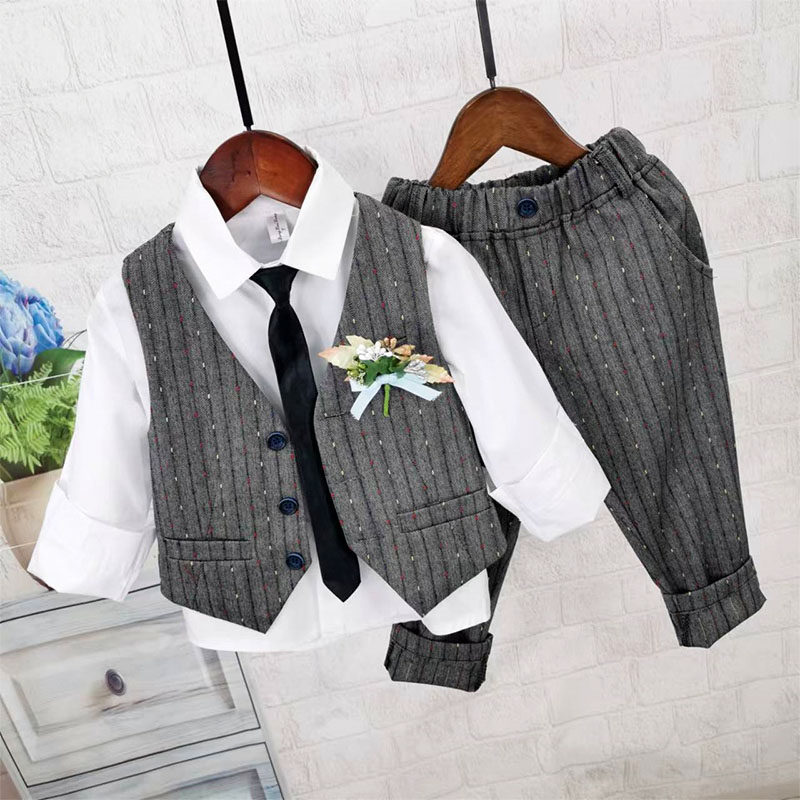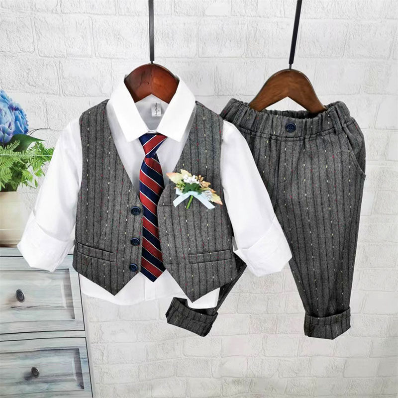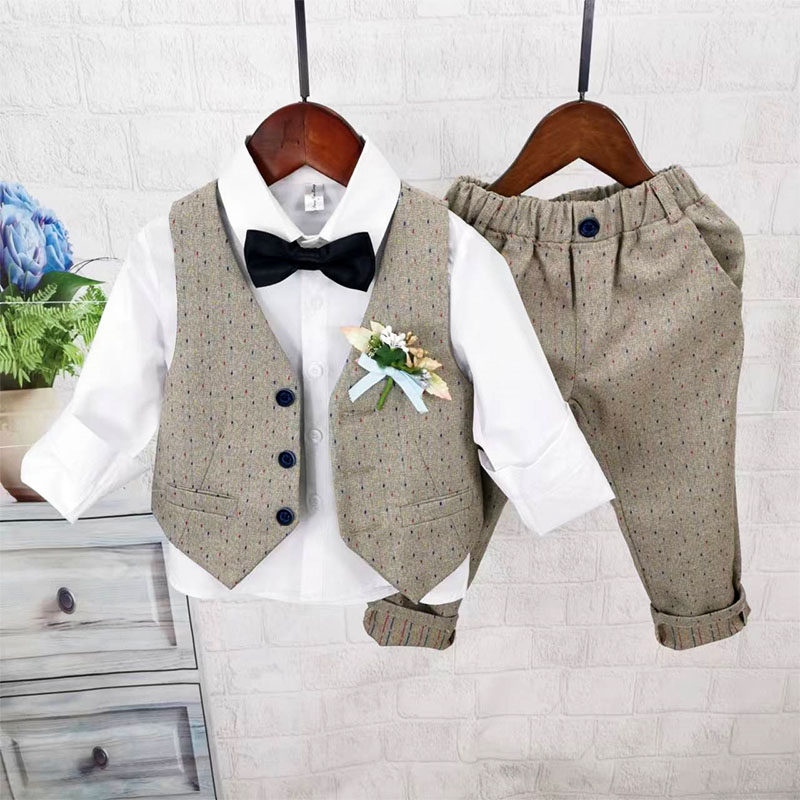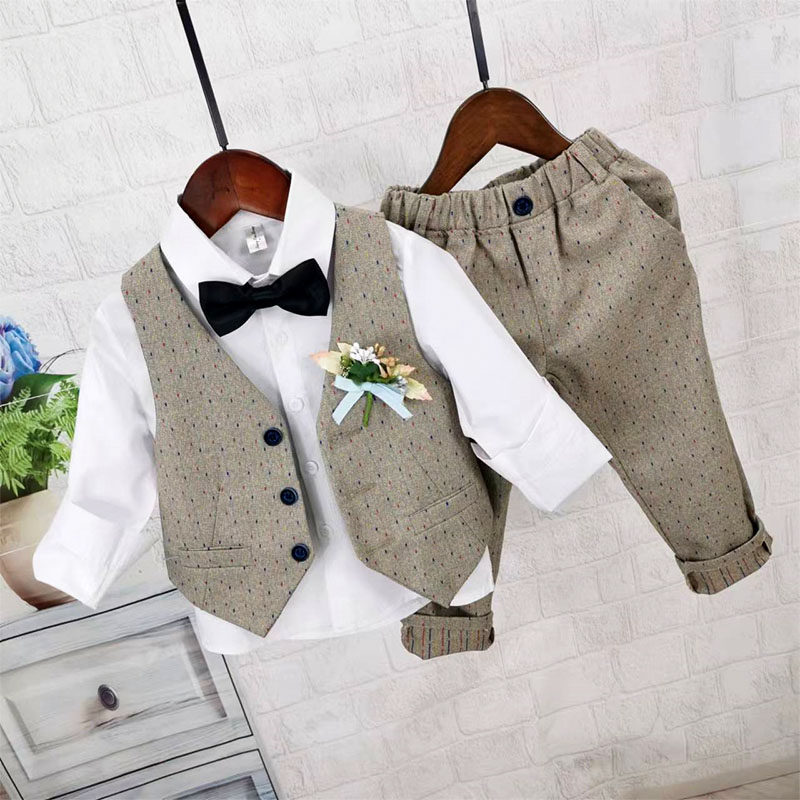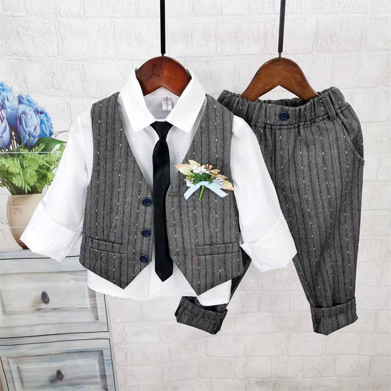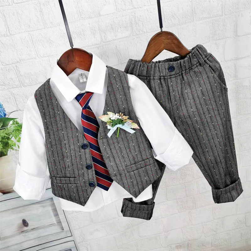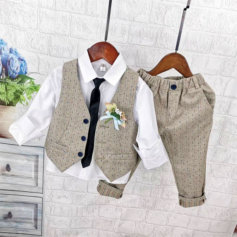 Осенний жилет для мальчиков, рубашка, детский комплект, 3 предмета, детская одежда