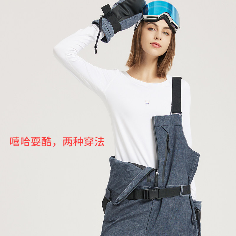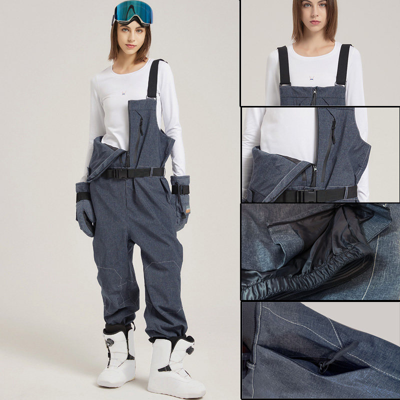 Лыжные подтяжки, джинсовые водонепроницаемые ветрозащитные штаны подходит для мужчин и женщин, в корейском стиле, свободный крой