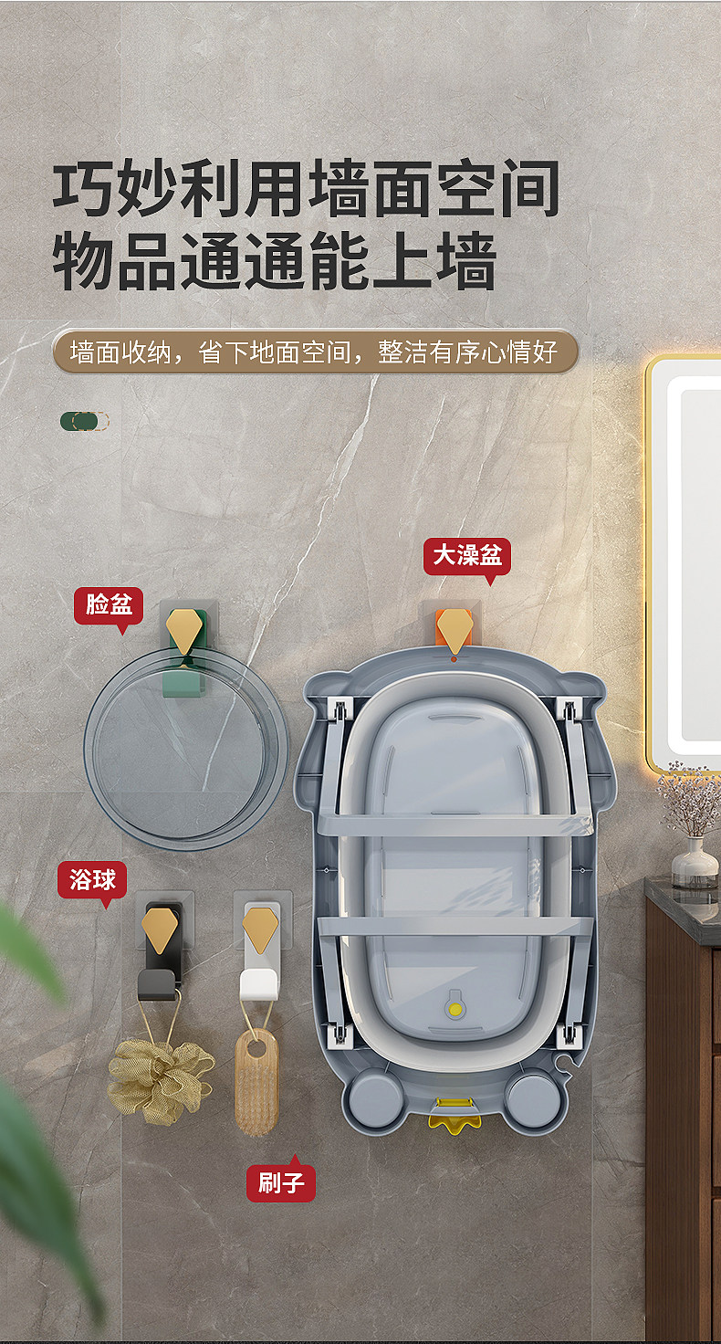 Полка для хранения бассейна, ванная комната, умывальник, висящая стена ванной комнаты, пробивая кастрюль без удара горшок, стойки