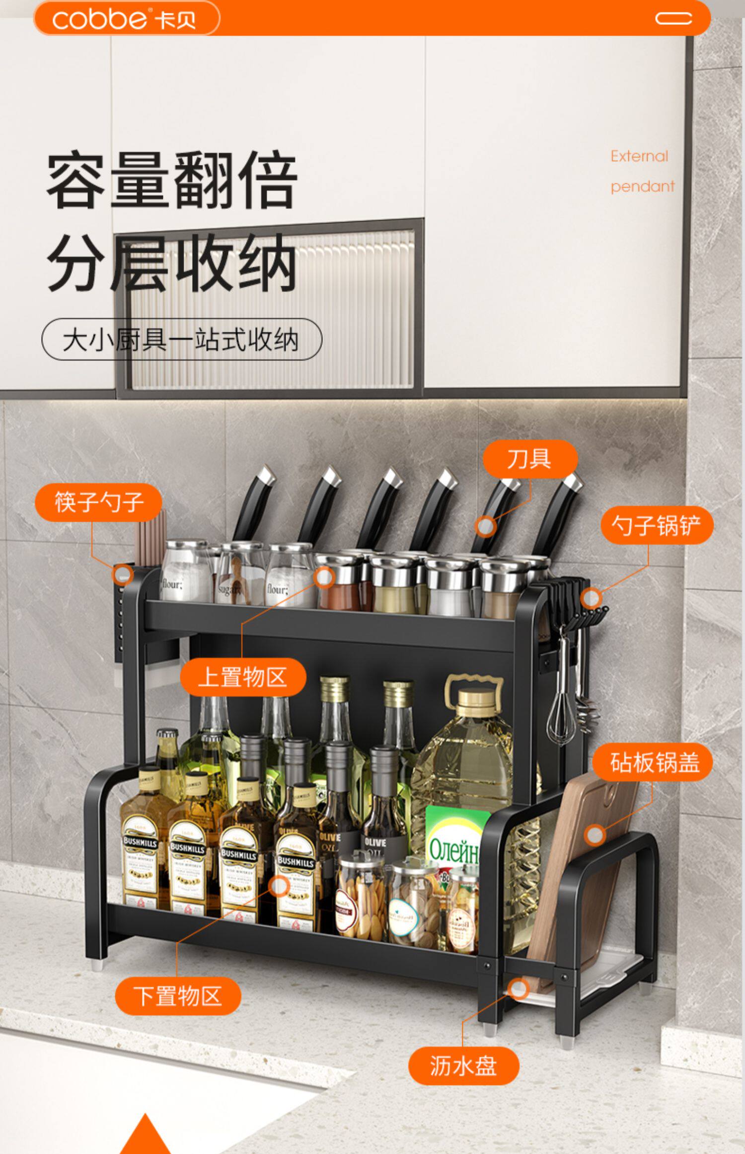 Carba Kitchen Cresest Shelf, палочка для палочек, лезвие, многопрофессиональная приправа кухонные принадлежности многослойные хранения полки