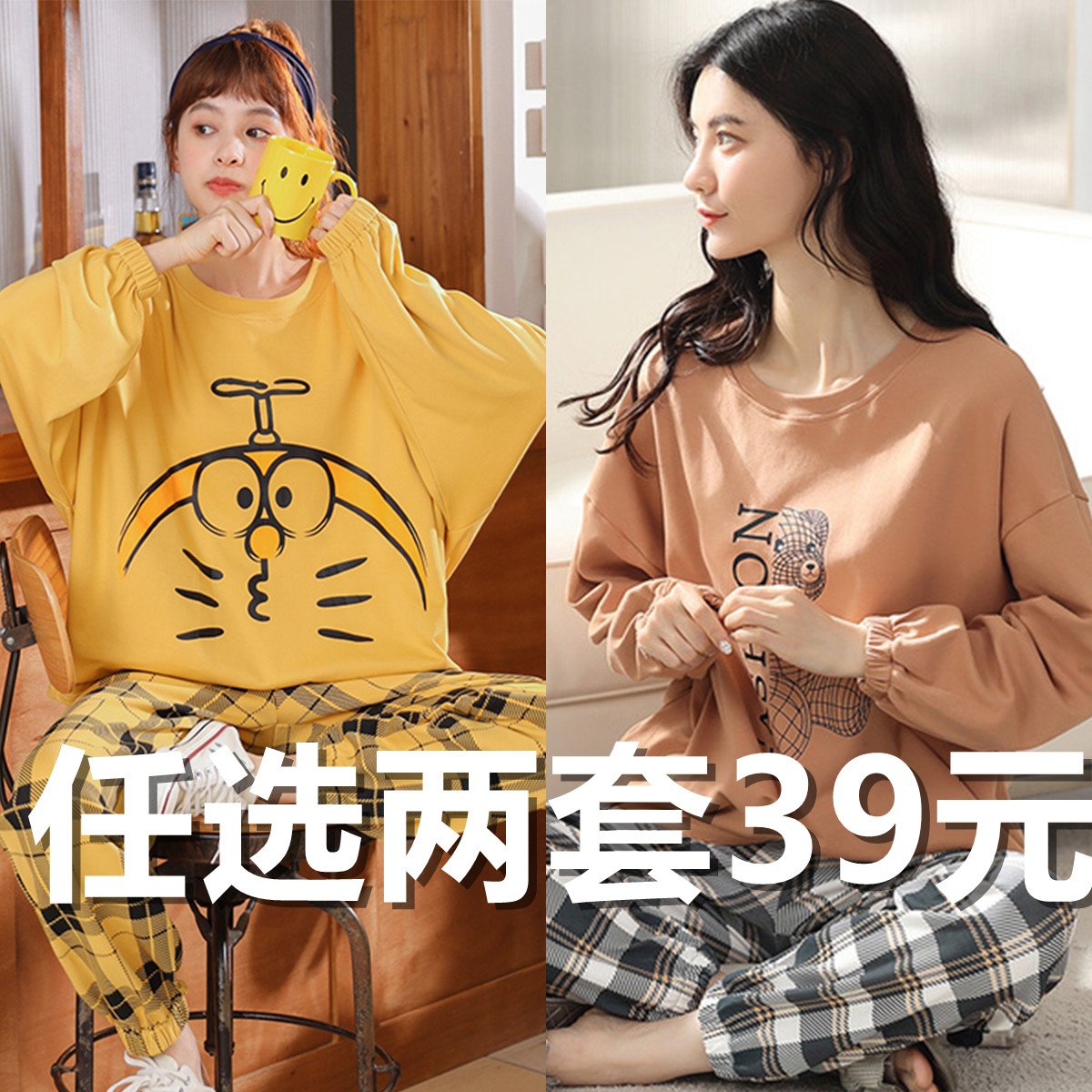 Осенняя пижама, хлопковый демисезонный лонгслив, тонкий комплект, коллекция 2023