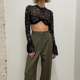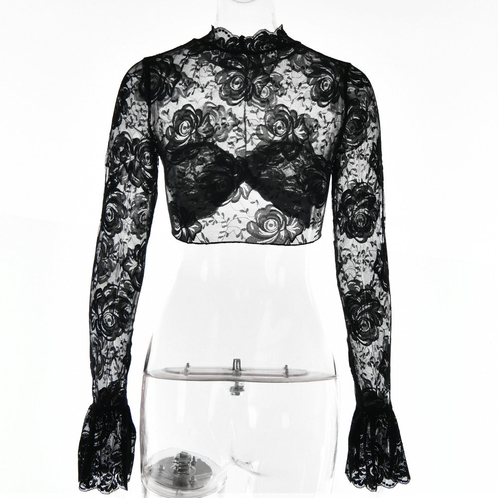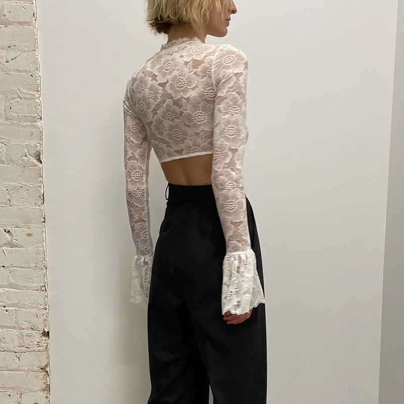 Кружевной лонгслив, короткая брендовая футболка, изысканный стиль