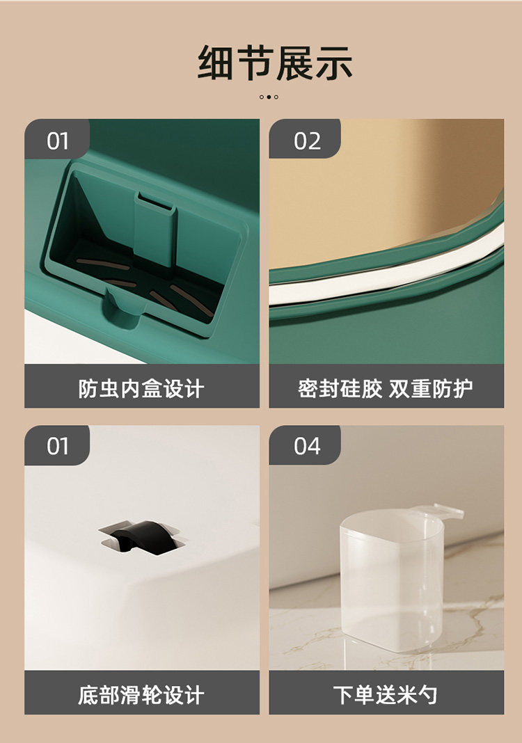 Сделайте рисовые ковши. Домохозяйственные насекомые -защищенные, влажные -уплотнительные продукты -Распространение рисовой коробки, легкая роскошь, рисовая ящик для хранения зерна риса