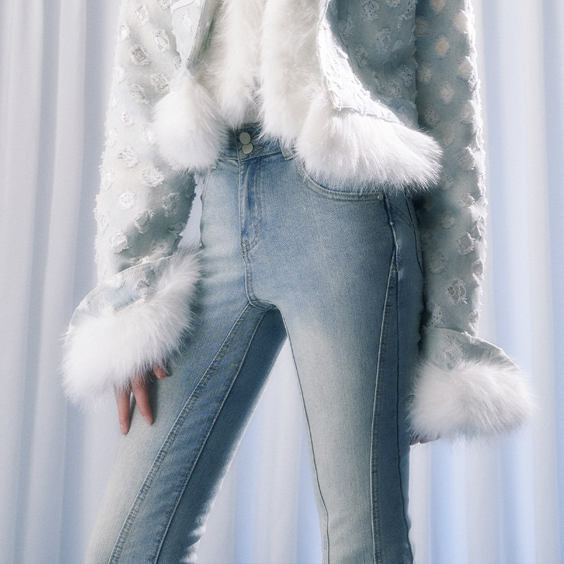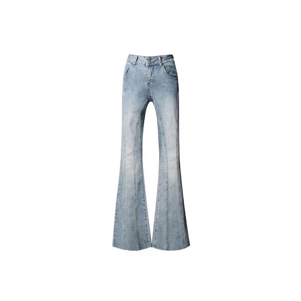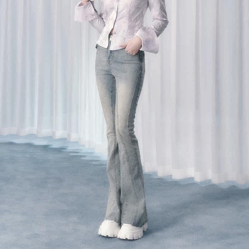 Синий приталенный корсет, джинсы, дизайнерские штаны, штаны-клёш, тренд сезона, высокая талия