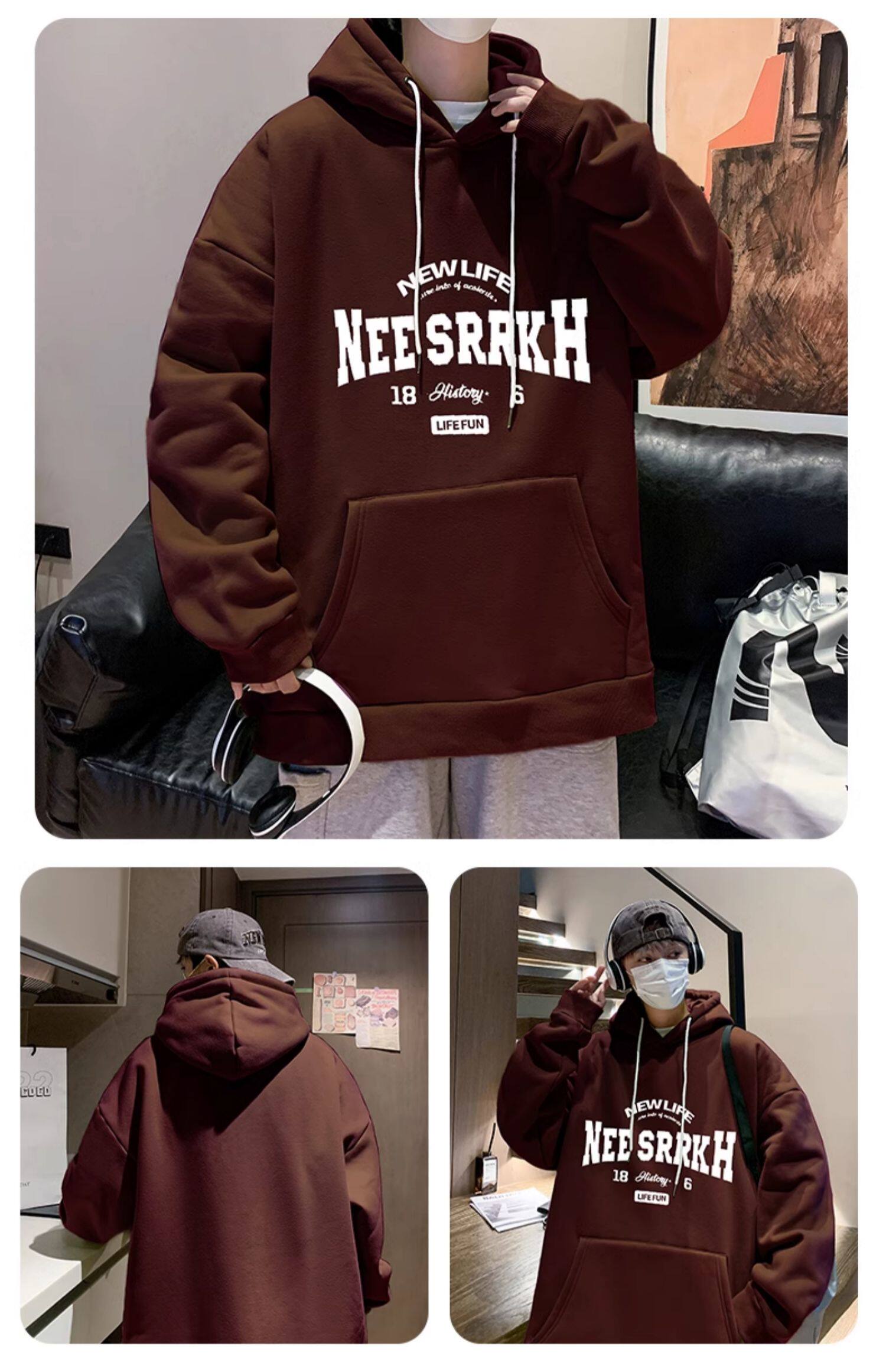 Мужской спортивный весенний осенний зимний модный шерстяной лонгслив с капюшоном, куртка, США, увеличенная толщина, классическая длина