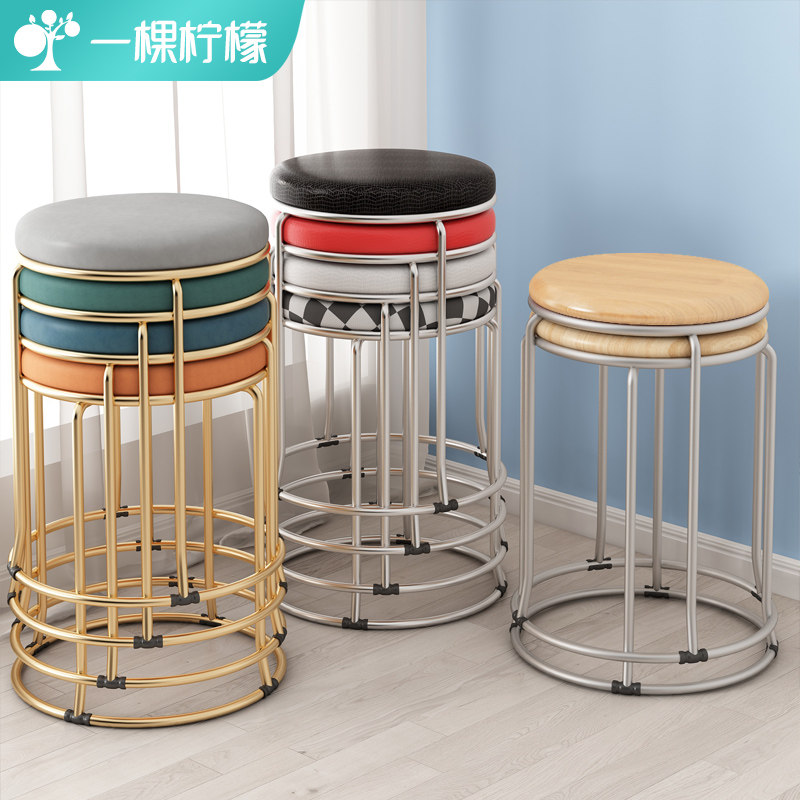 Домохозяйство Стула Заключив настоящий круглый стул Современный простой табурет гостиная маленькая табуретка для творческого творческого стола Высокий стул Высокий стул может быть сложен
