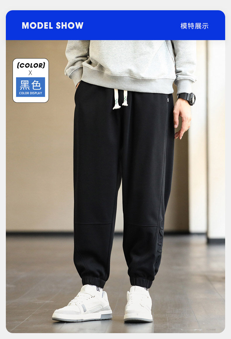 Демисезонные вместительные и большые модные шерстяные универсальные черные штаны для отдыха, свободный крой