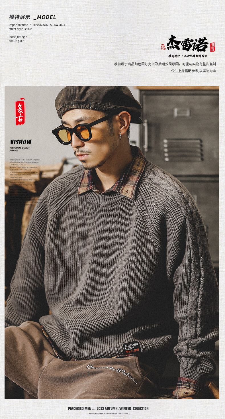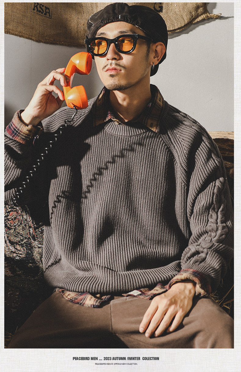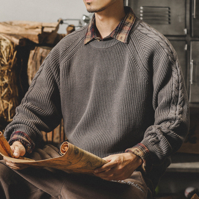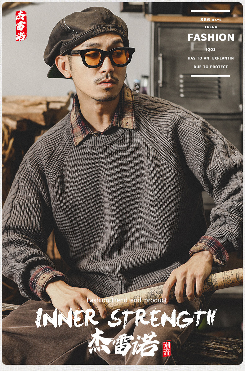 Классический ретро трикотажный демисезонный свитер, в американском стиле, оверсайз, размер, 2025 года, увеличенная толщина