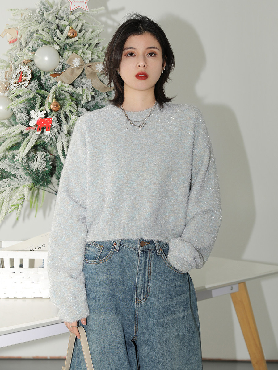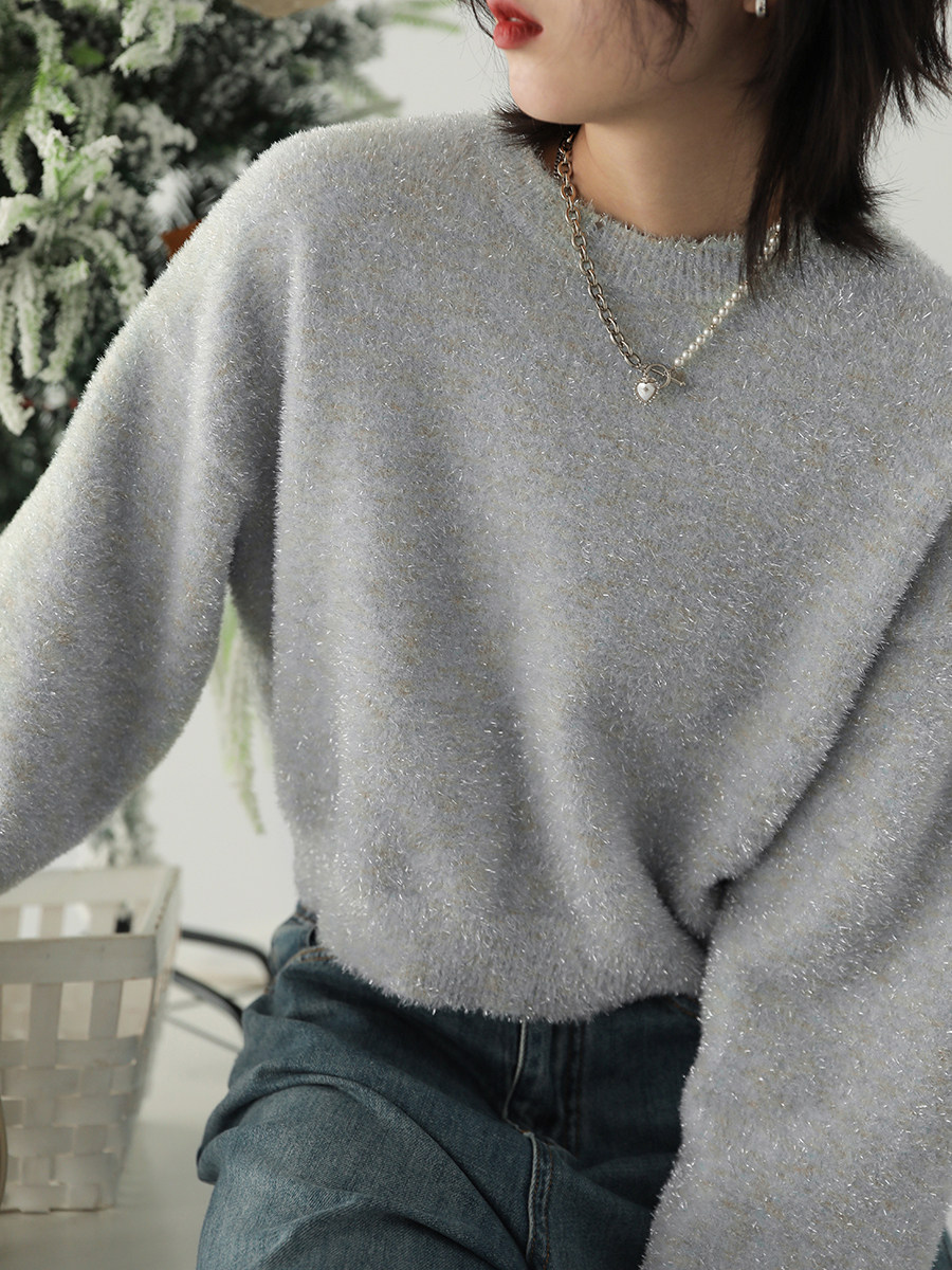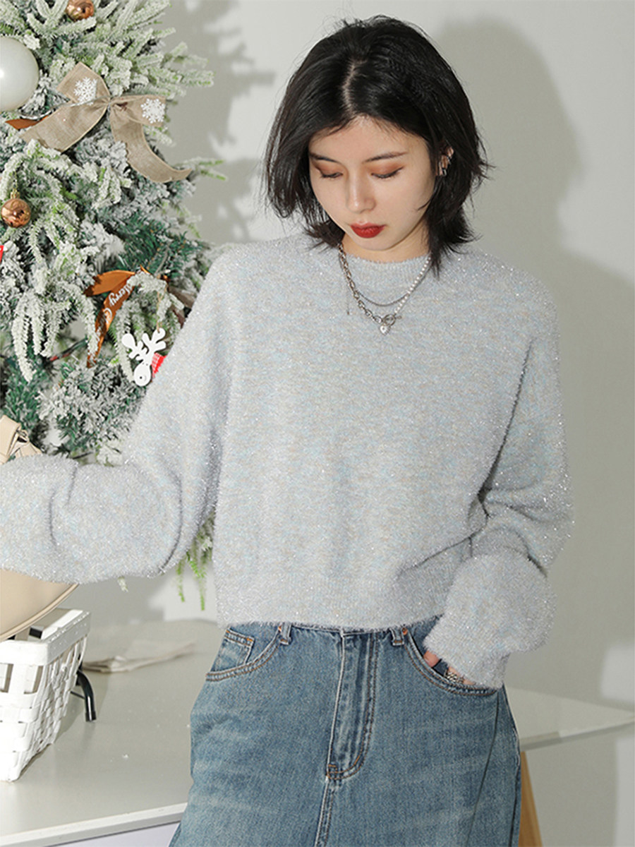Классическая круглая шея+рыхлый осенний дизайн плеча, простой и щедрый