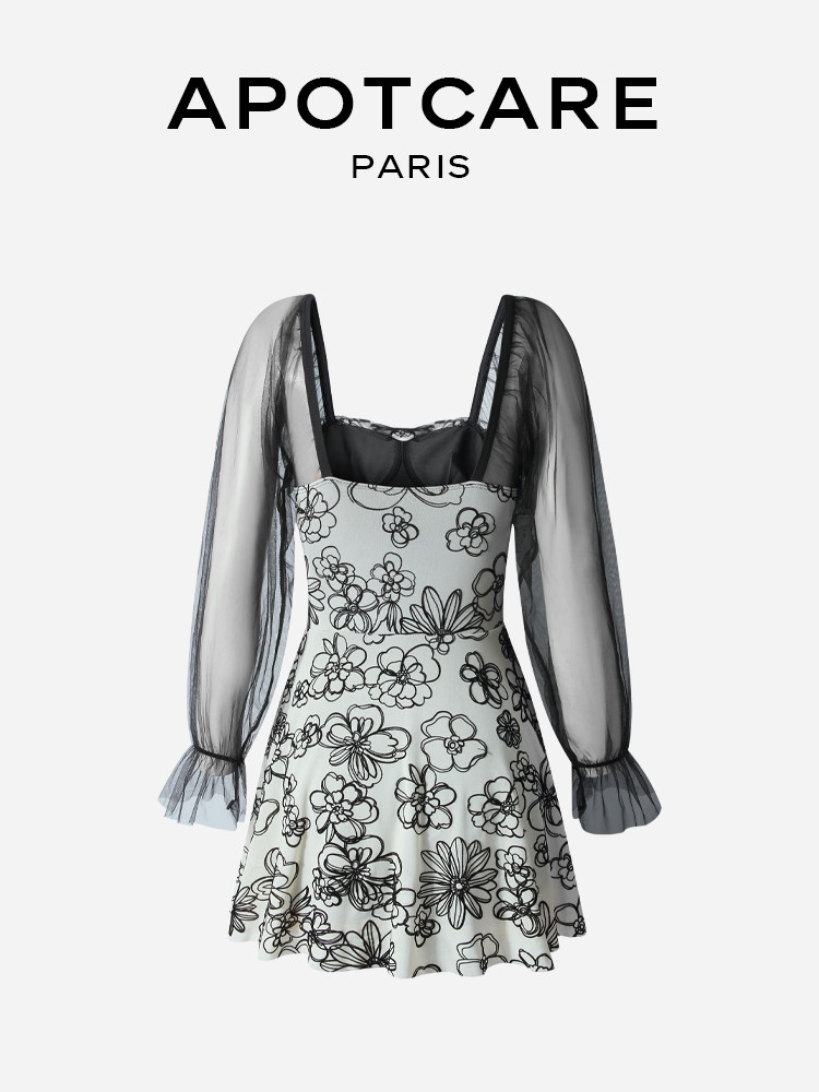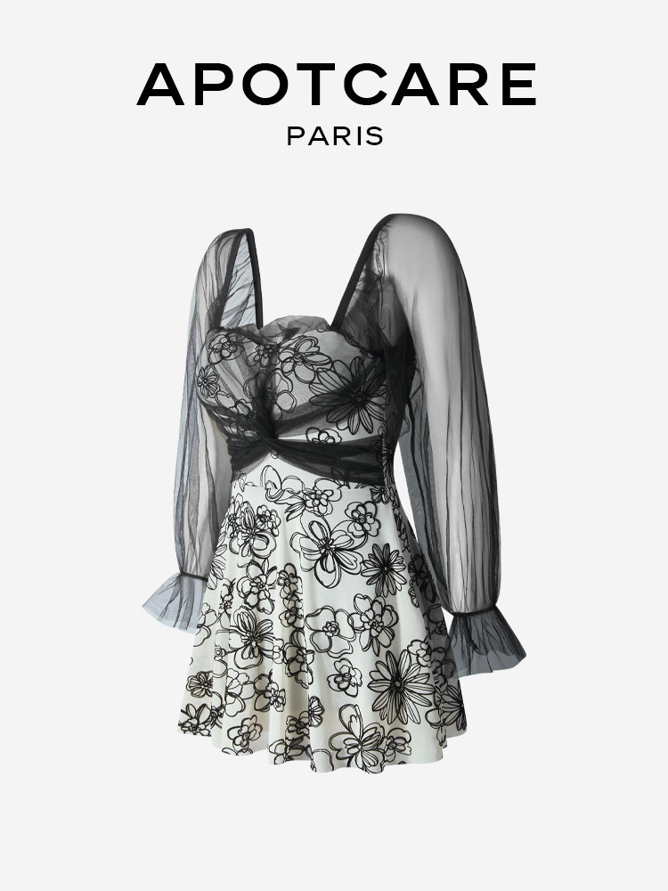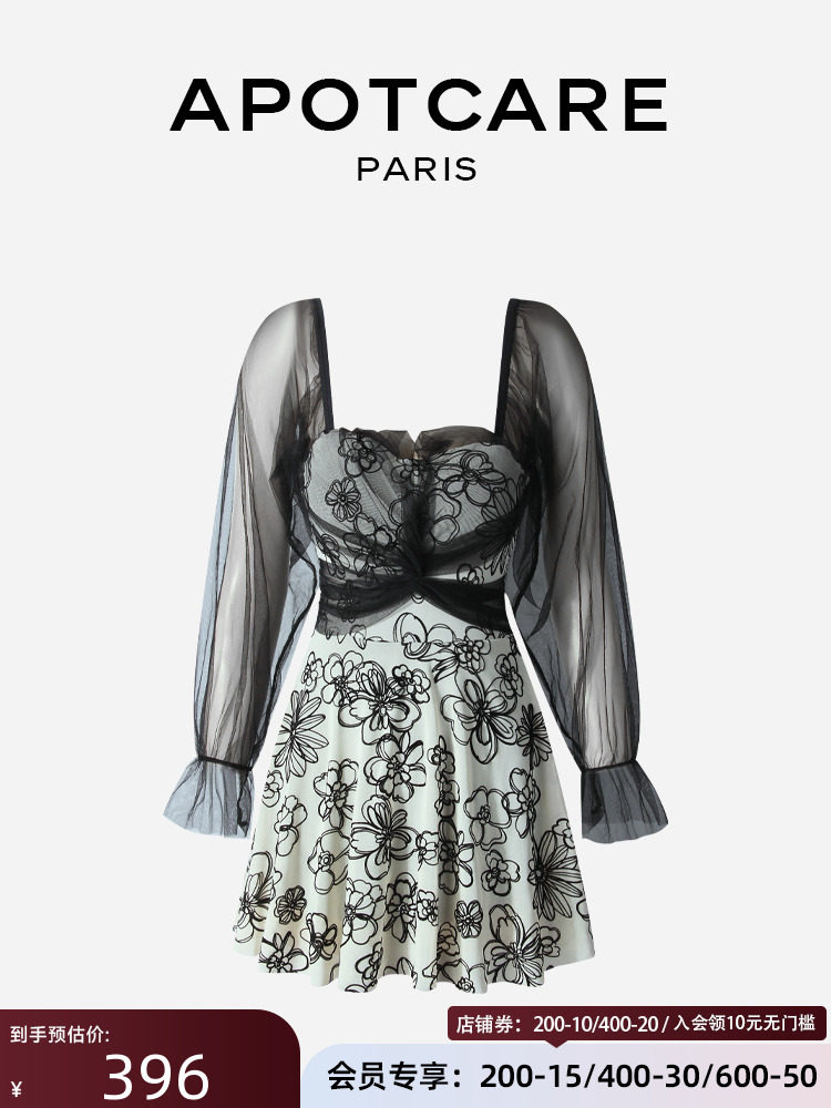Французский апоткаре купальник женская горная камелия старшая сенсорная сеть сетка с длинной точки зрения