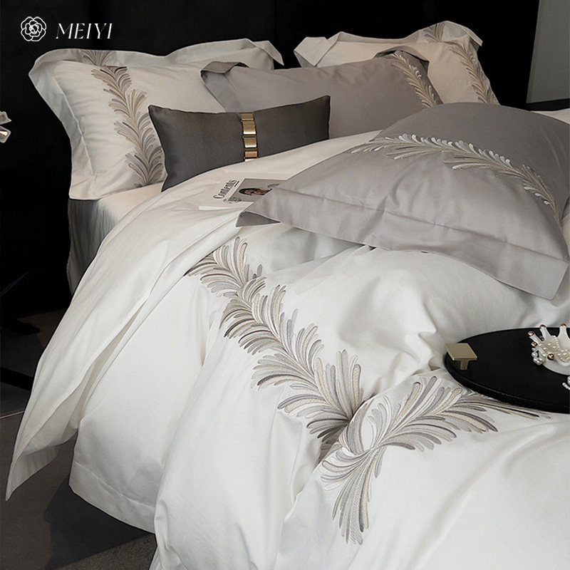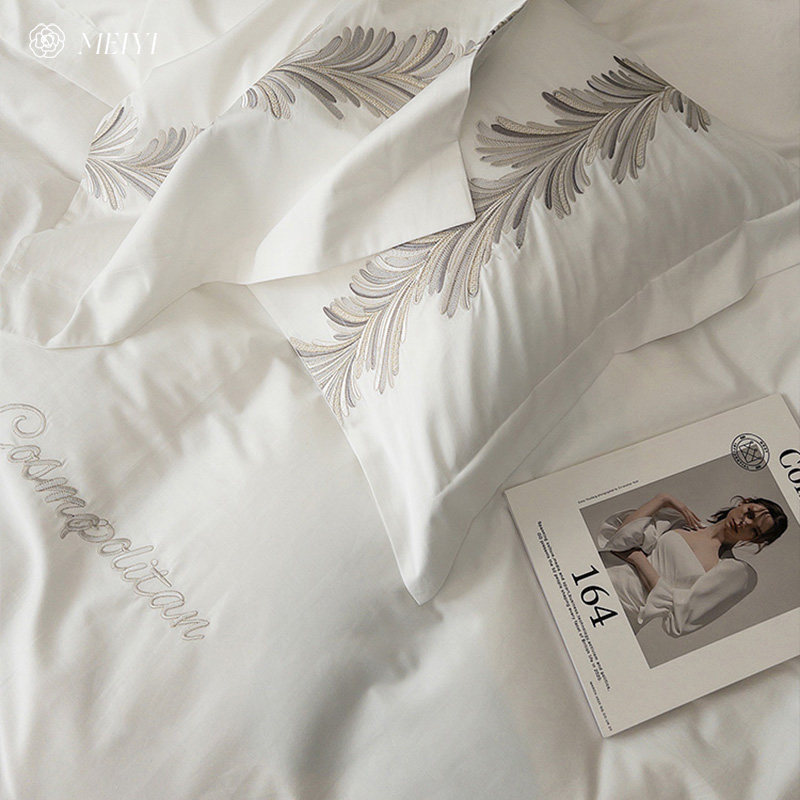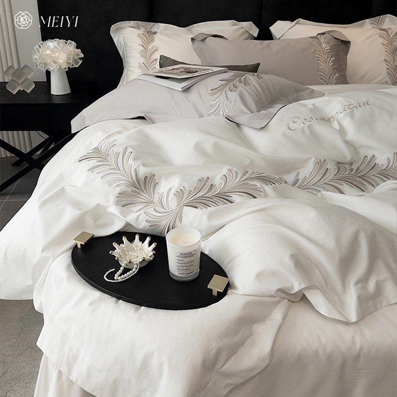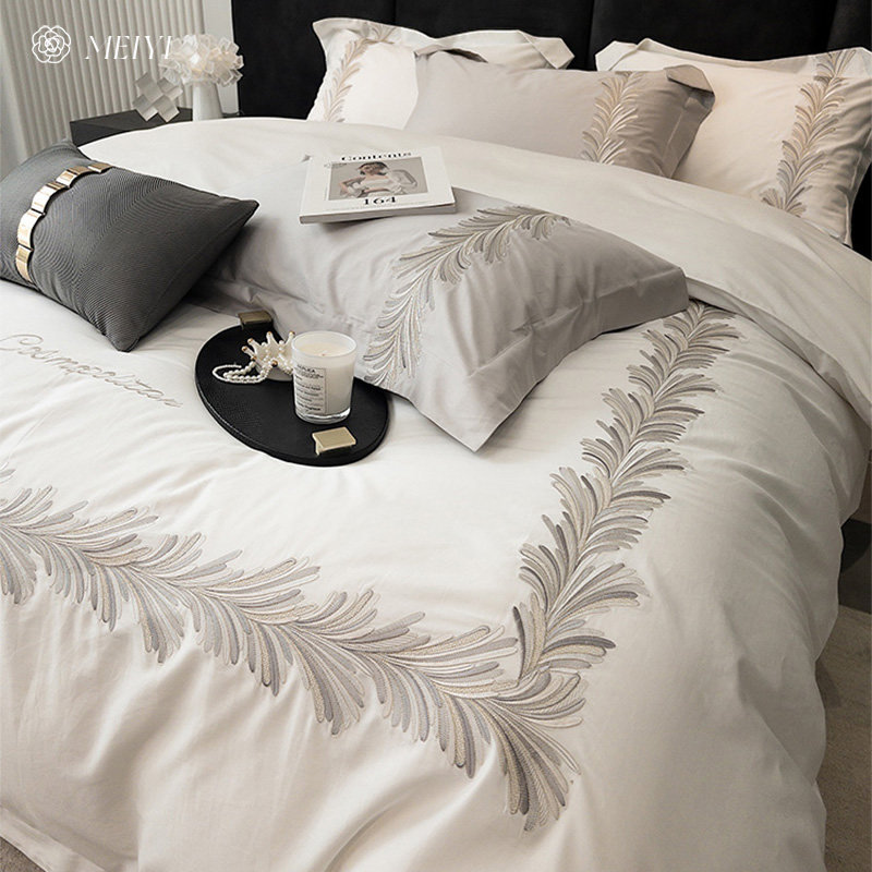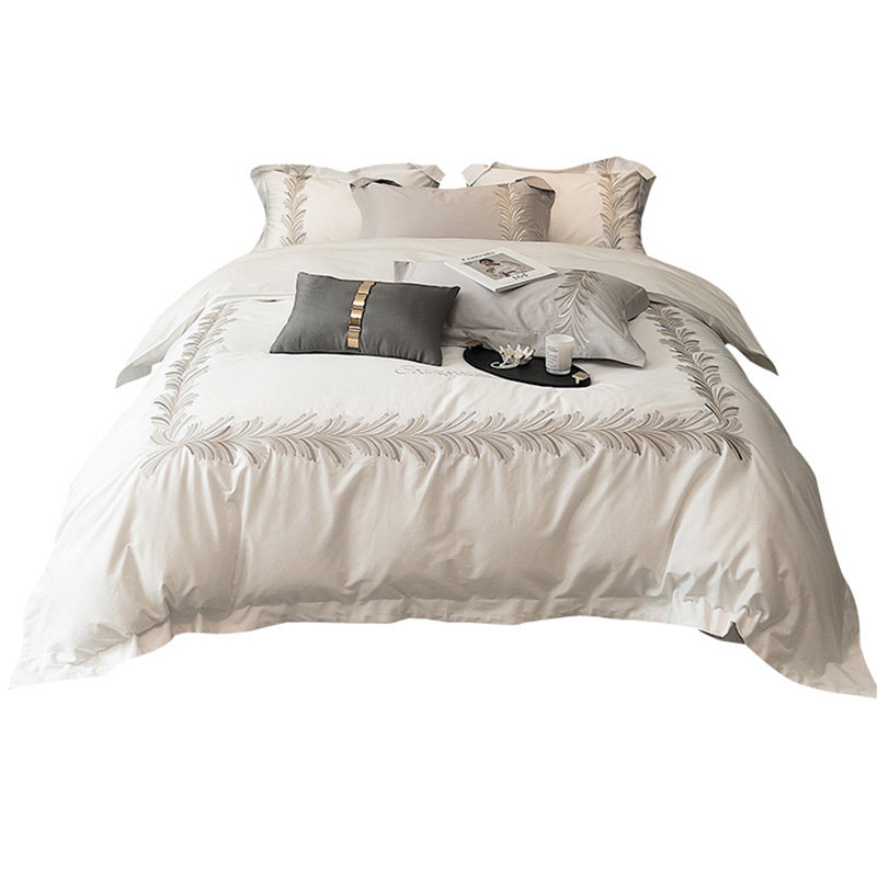Хлопковый комплект, пододеяльник, покрывало, легкий роскошный стиль, 4 предмета, 100 шт, с вышивкой, простой и элегантный дизайн, изысканный стиль