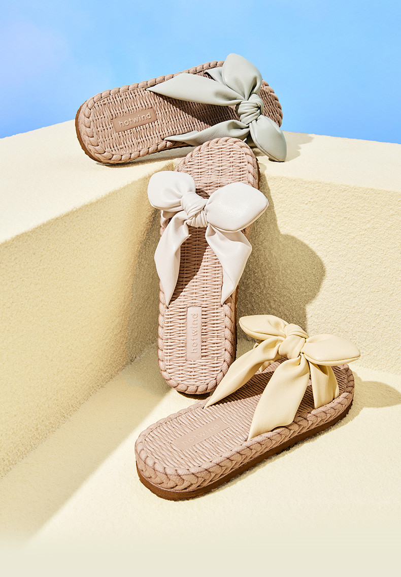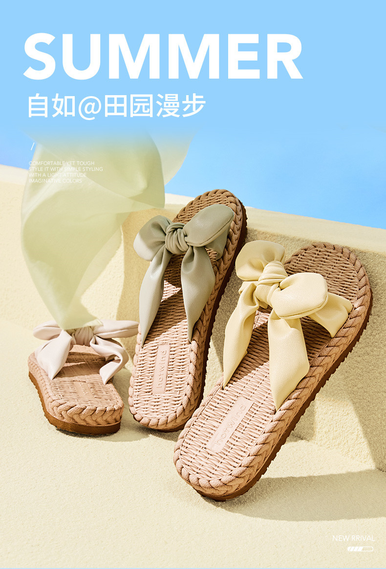 Летние модные милые тапочки с бантиком, универсальная пляжная обувь, 2023 года