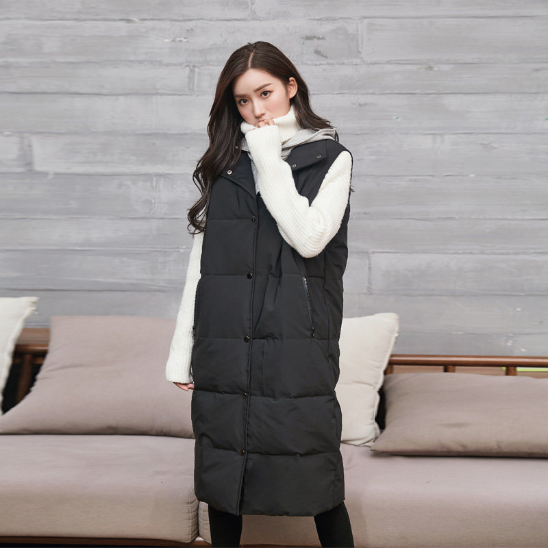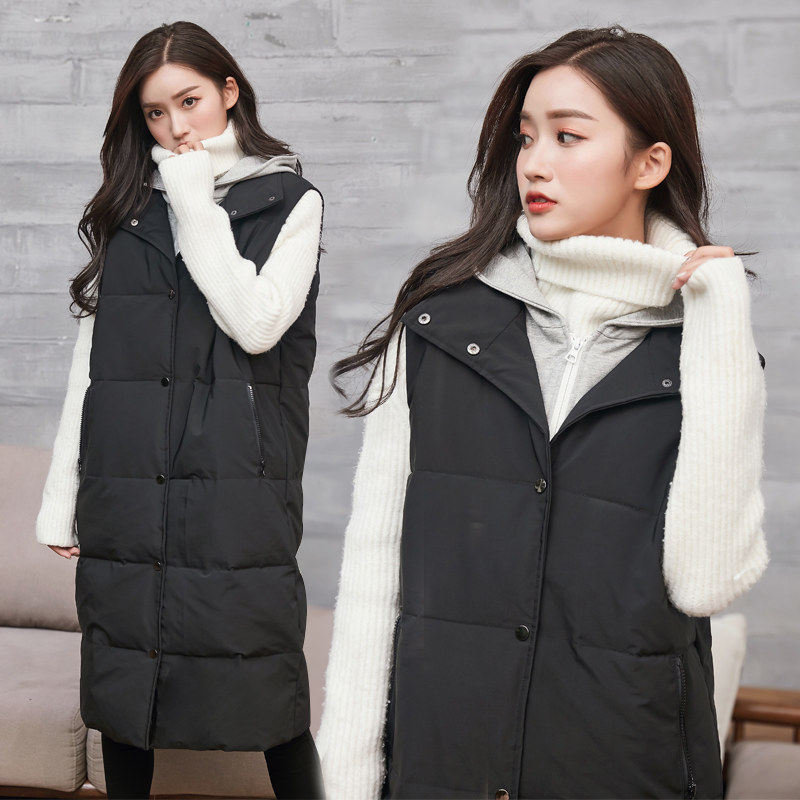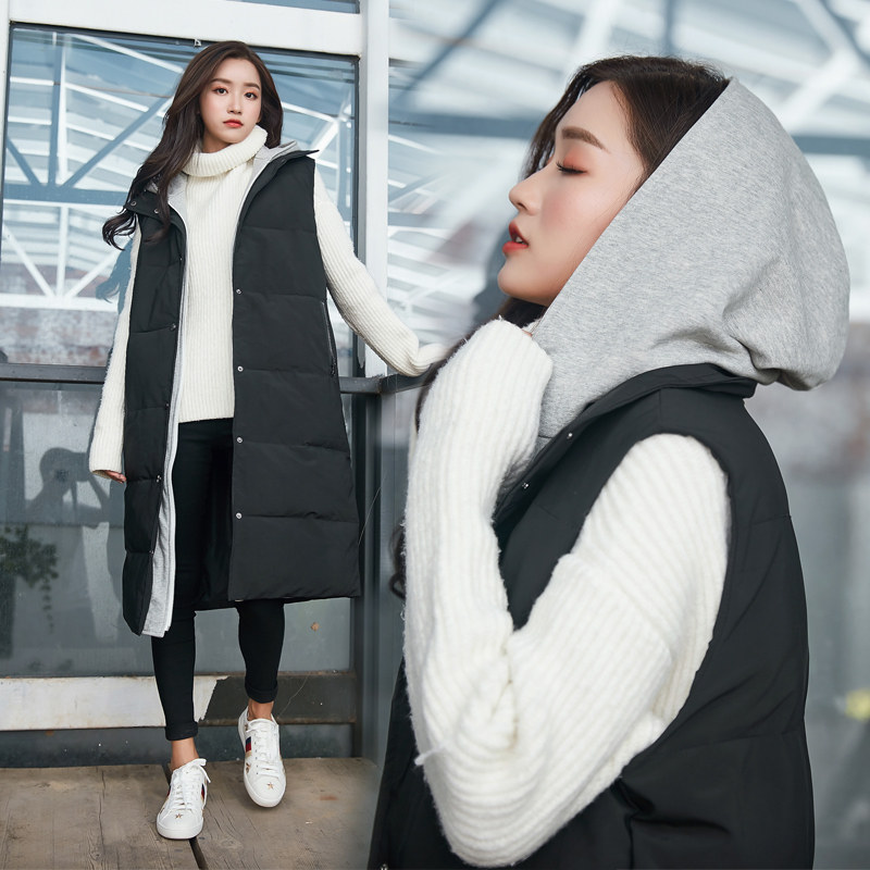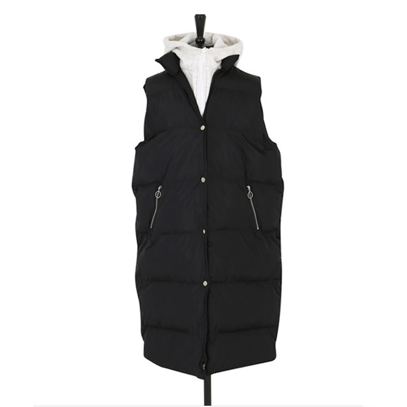 Длинный комплект, толстовка с капюшоном, черный зимний жилет, длина макси, облегающий крой, большой размер