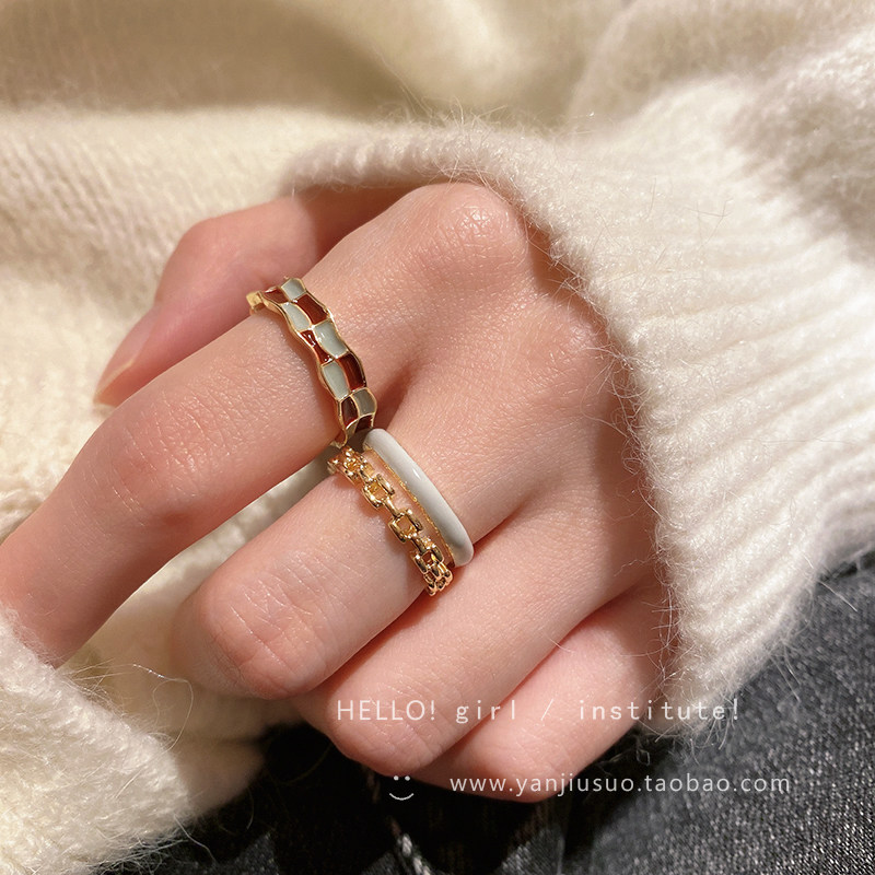 Эмаль, шахматы, безразмерное небольшое дизайнерское модное кольцо, изысканный стиль, легкий роскошный стиль, тренд сезона, на указательный палец
