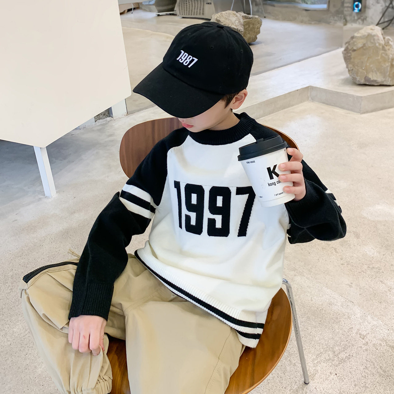 左西 Осенний свитер для мальчиков, свободный крой