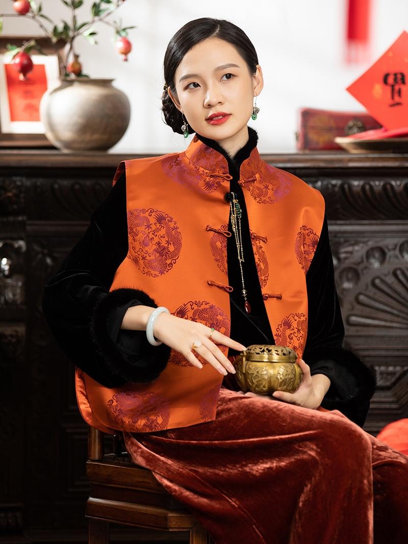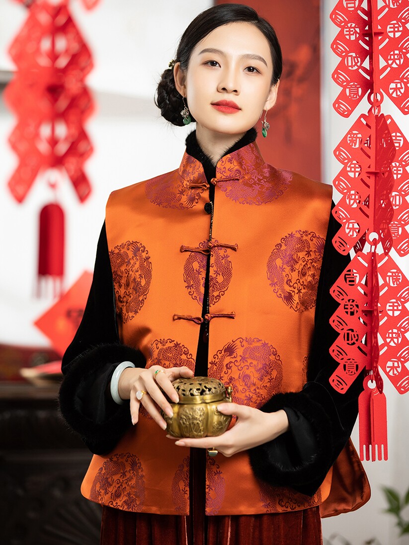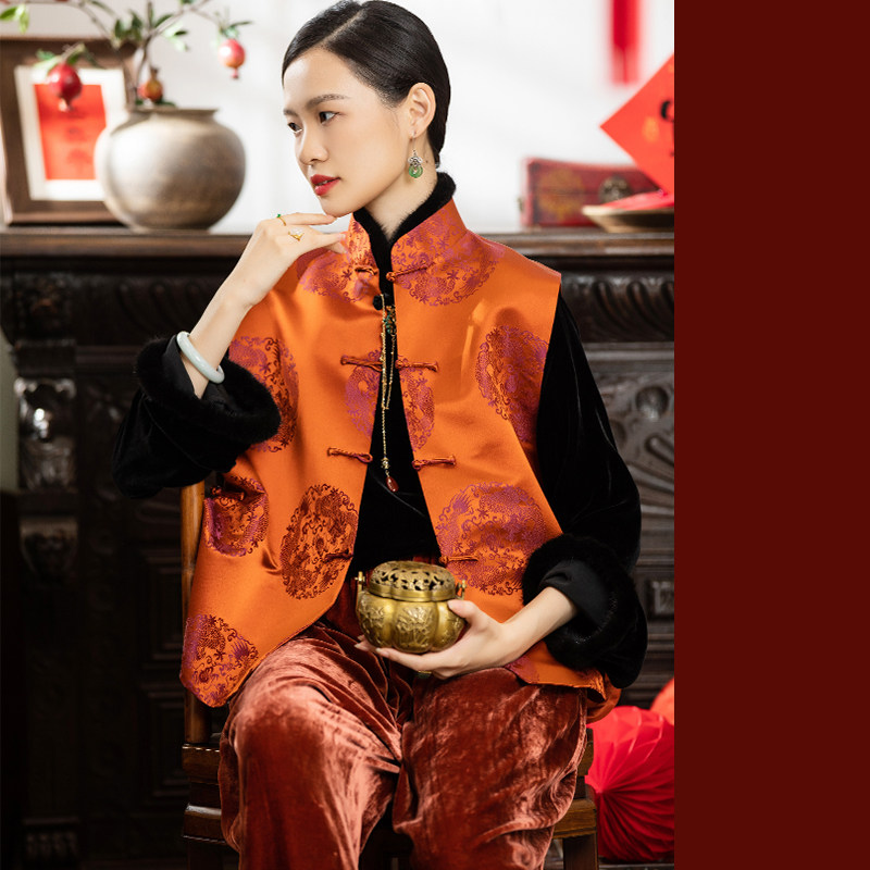 Шелковый ретро жилет, китайский стиль