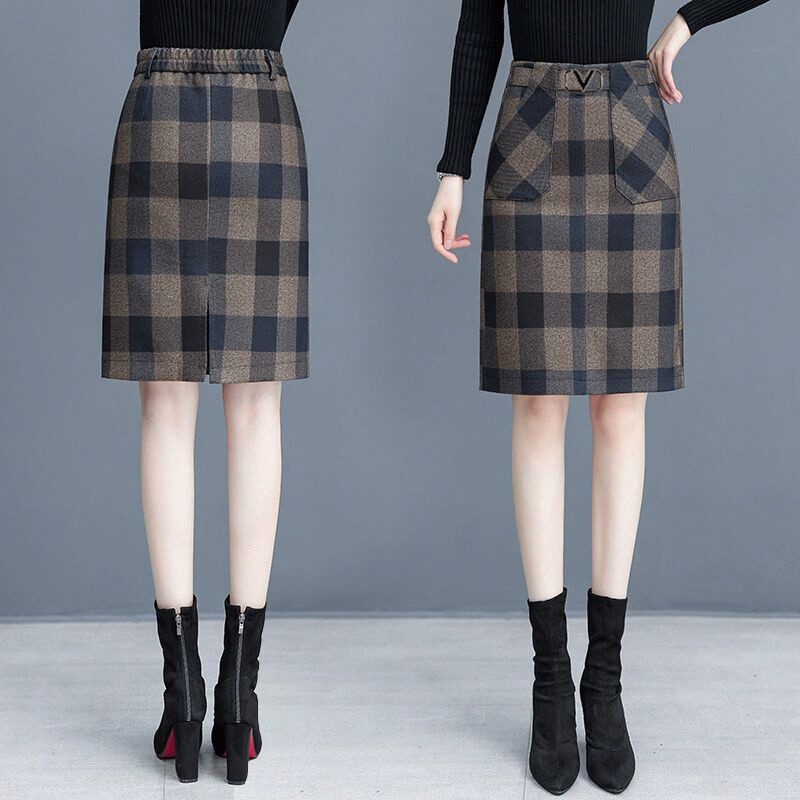 Шерстяная клетчатая демисезонная юбка, мини-юбка, 2025 года, высокая талия, А-силуэт, с акцентом на бедрах