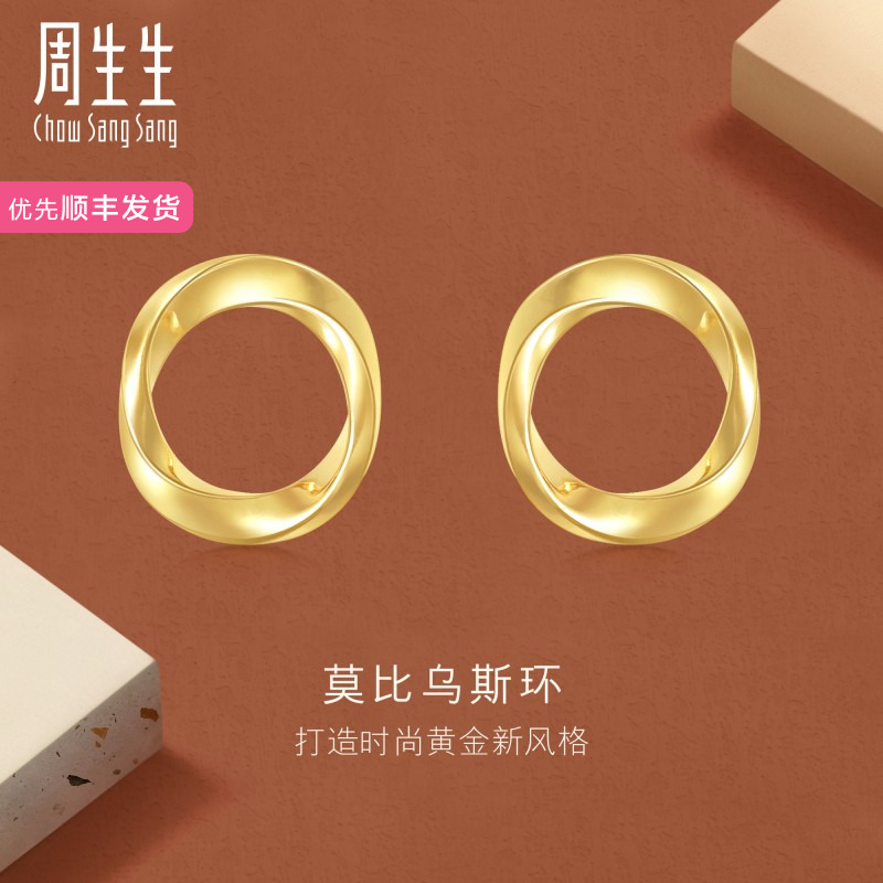 周生生 Gin Mobius Ring Gold Sergrings 5G Золотые серьги ювелирные изделия 93863E