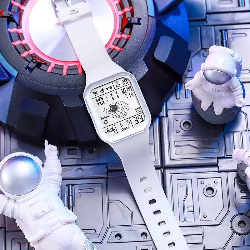 Космические квадратные неоновые детские электронные мужские часы подходит для мужчин и женщин