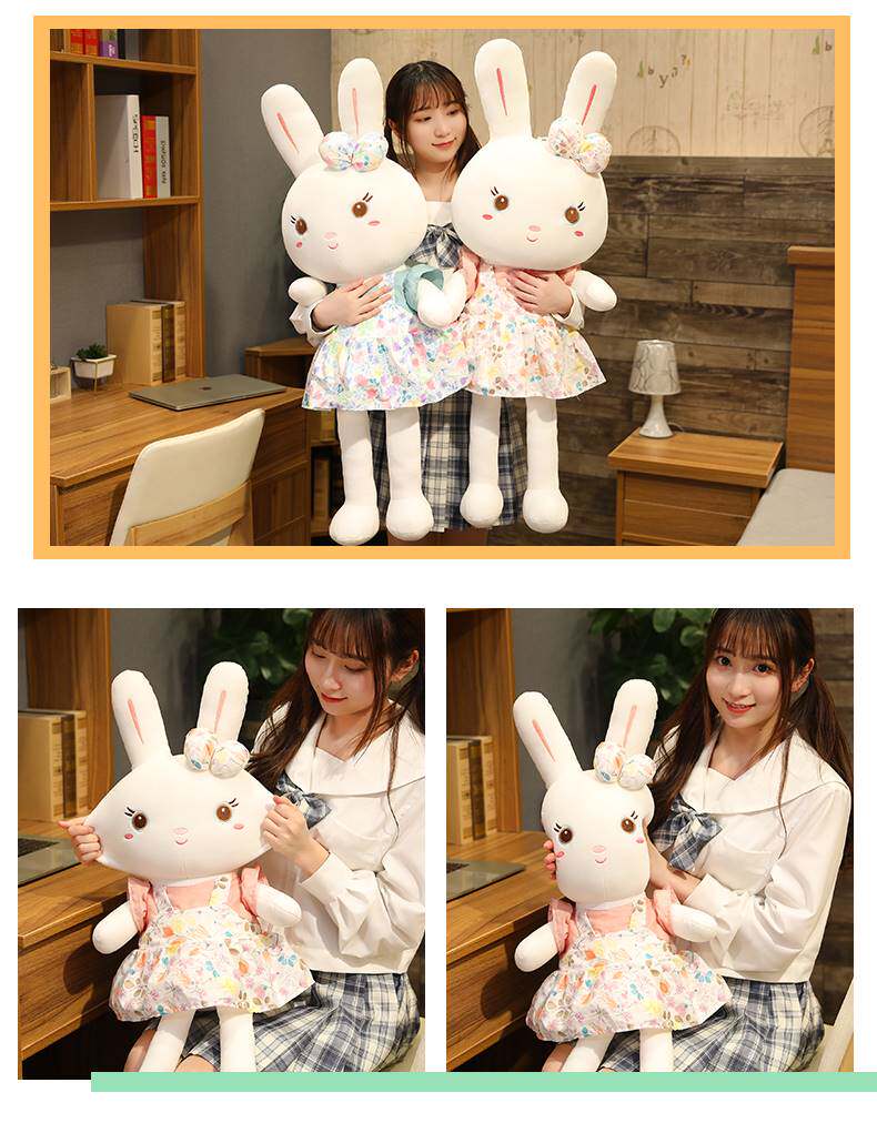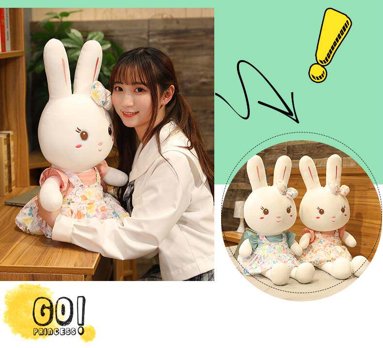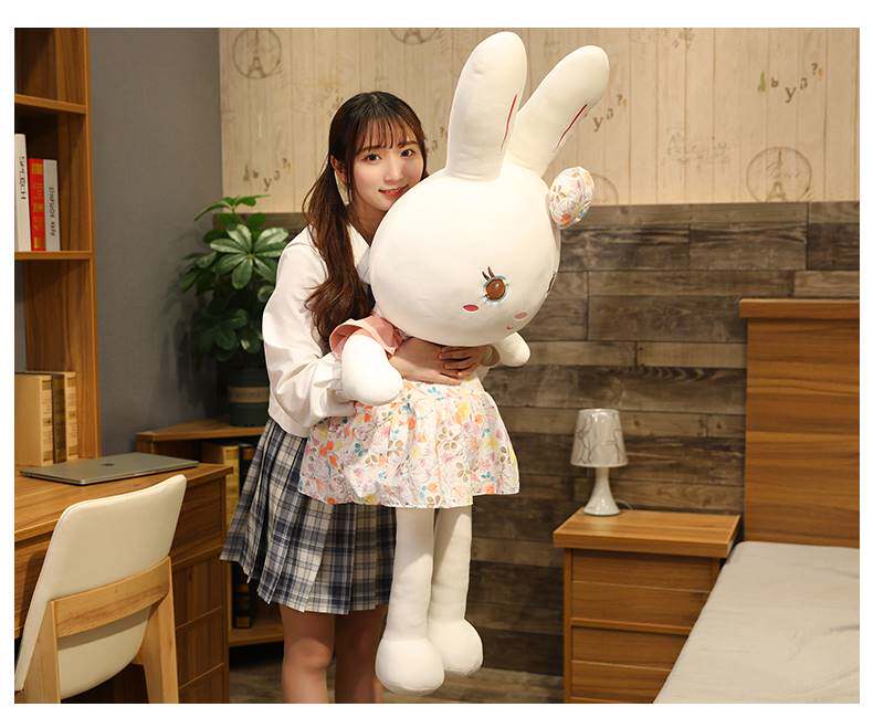 Плюшевый кролик, милая игрушка, юбка, мягкая большая тряпичная кукла для сна, в цветочек
