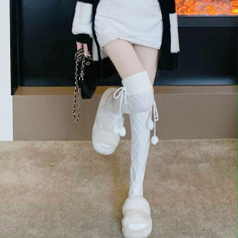 Белые японские демисезонные трикотажные удерживающие тепло носки, высокие сапоги, увеличенная толщина