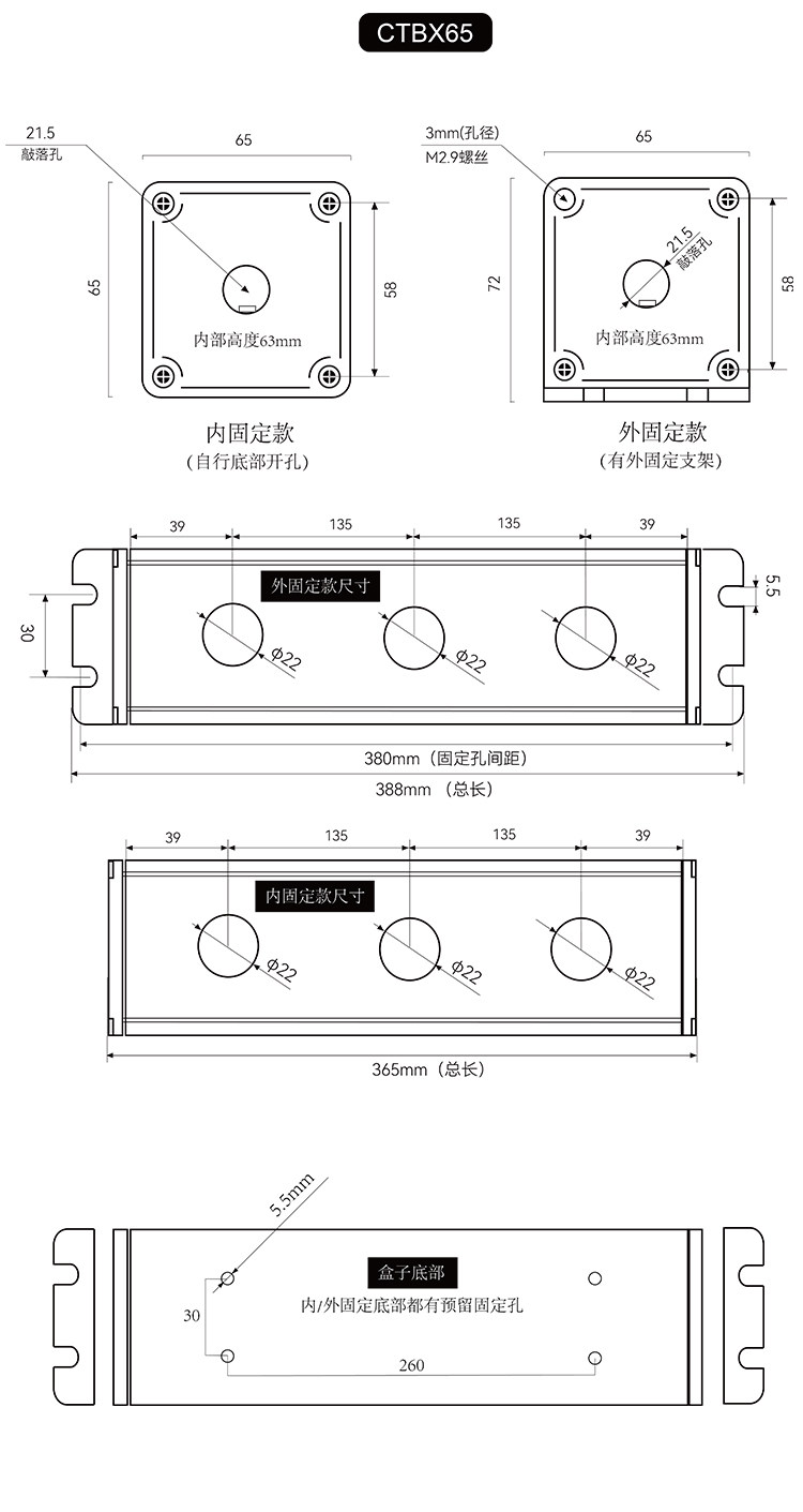 - Внутренне фиксированный пустой ящик (без переключателя)