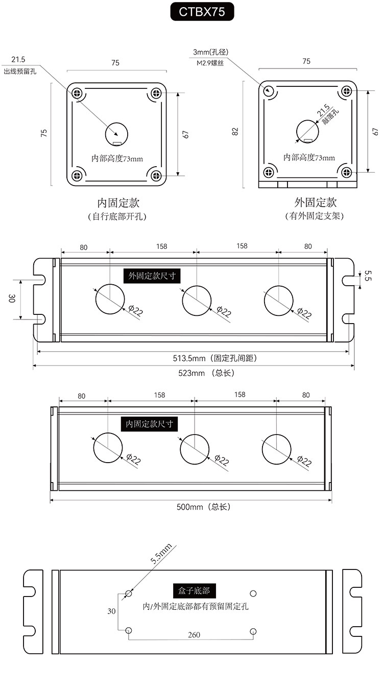 - Внешний фиксированный пустой ящик (без переключателя)