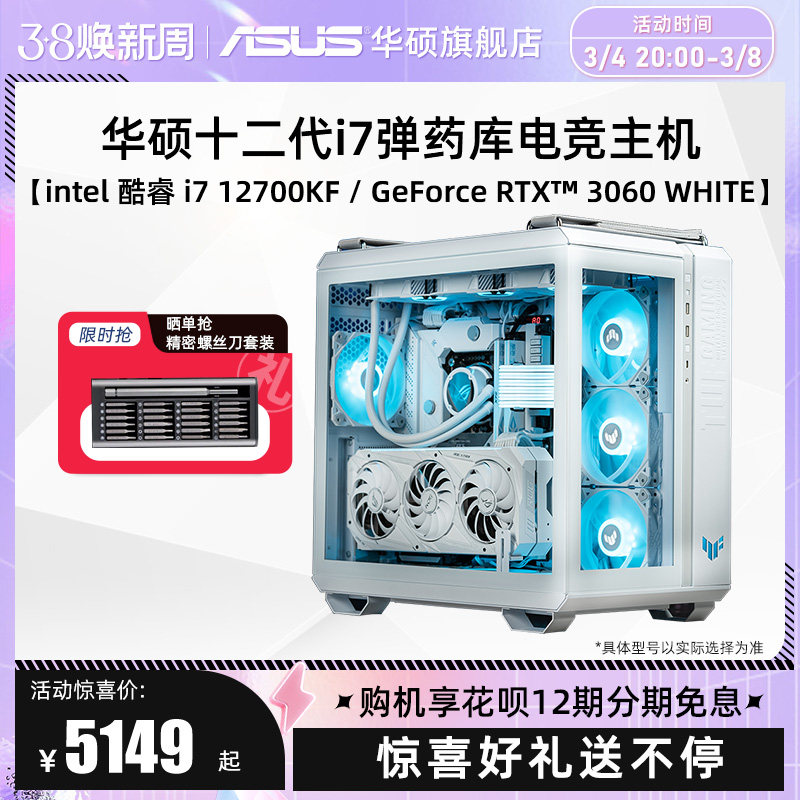 Asus Ammunition Библиотека серия серии Host Diy Assembly Machine i7-13790F/14700KF/RX6600/RTX4060TI/4070 Графическая карта Белая электронная спорта.