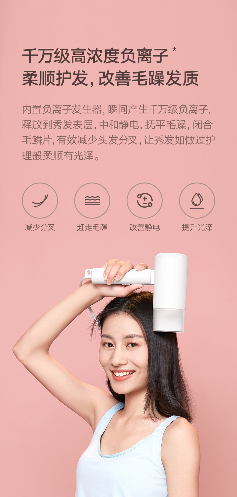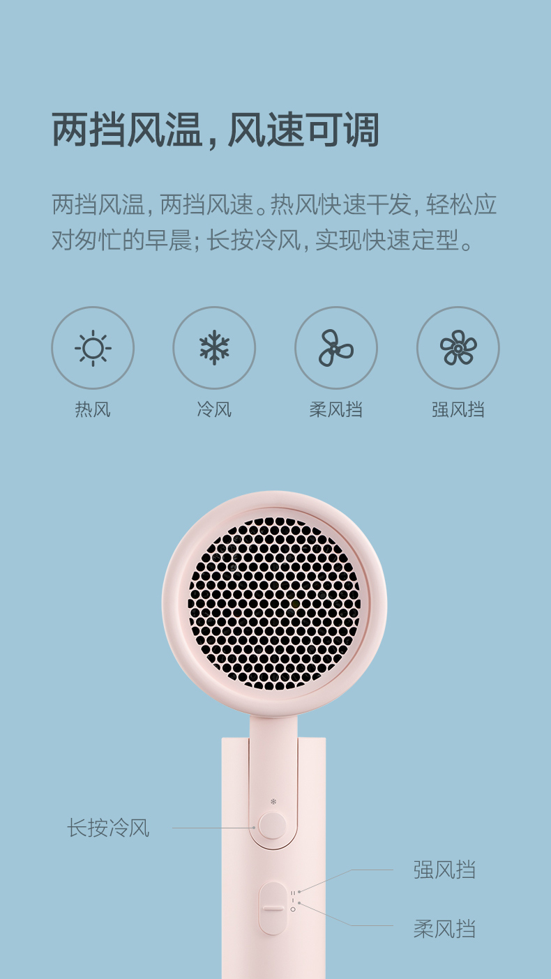 Семейство Xiaomi Mimi Негативное ионное портативное фен с феном H100 Складывание вентилятора Скорость вентилятор Speed Dry Dormitor