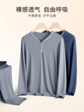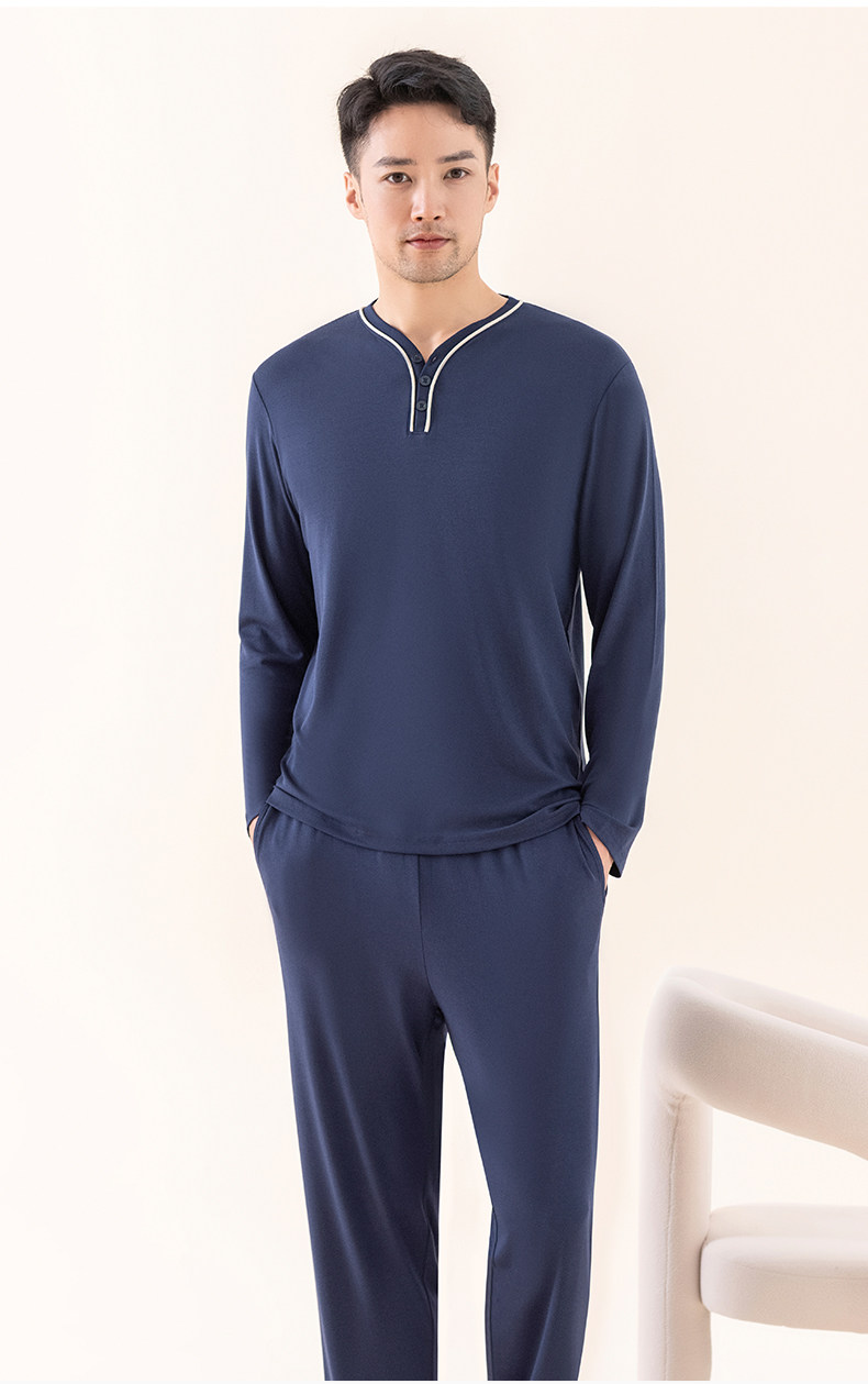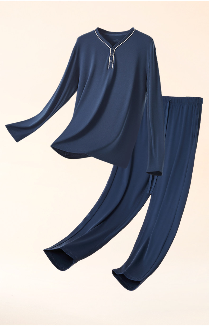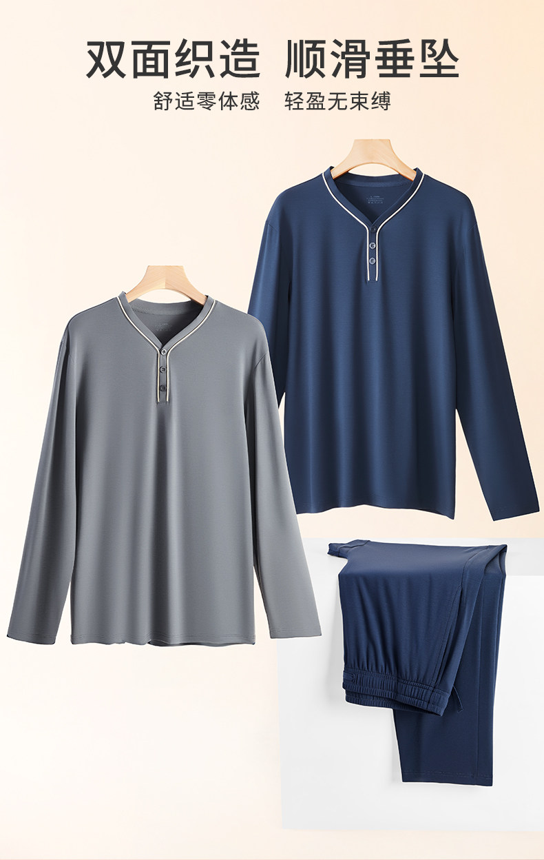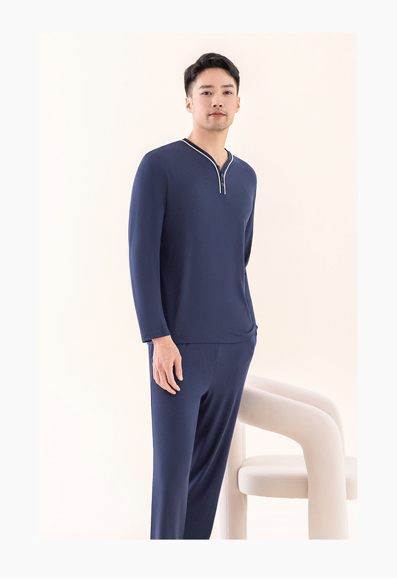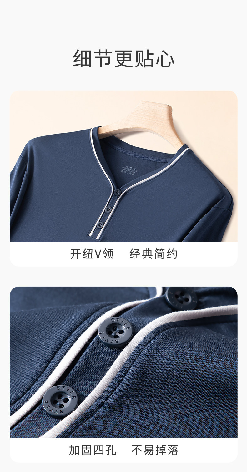 Мужская летняя пижама, тонкий лонгслив, комплект, V-образный вырез, большой размер