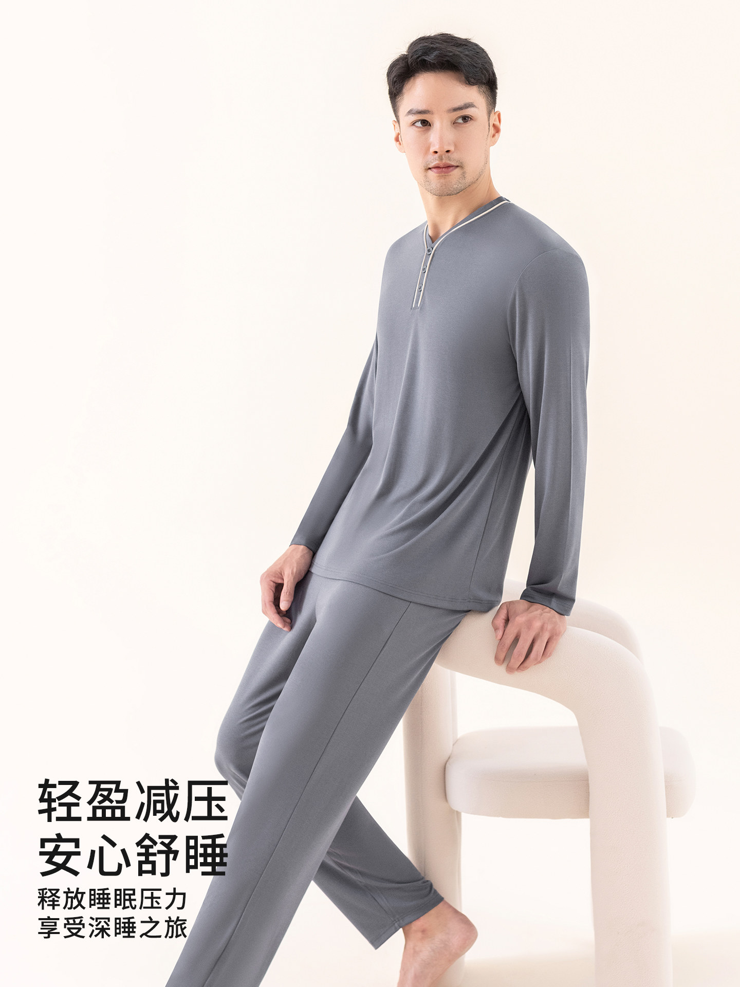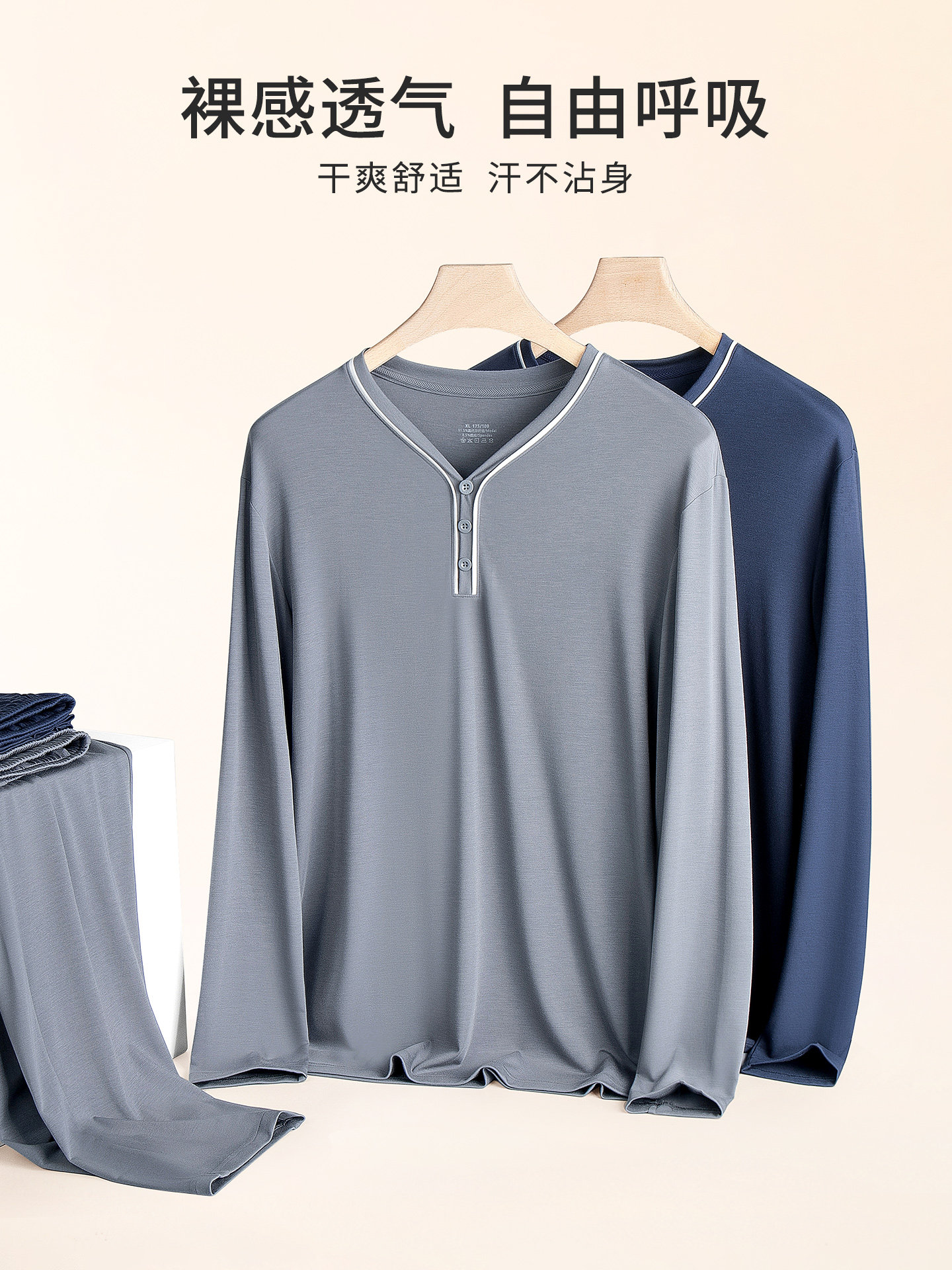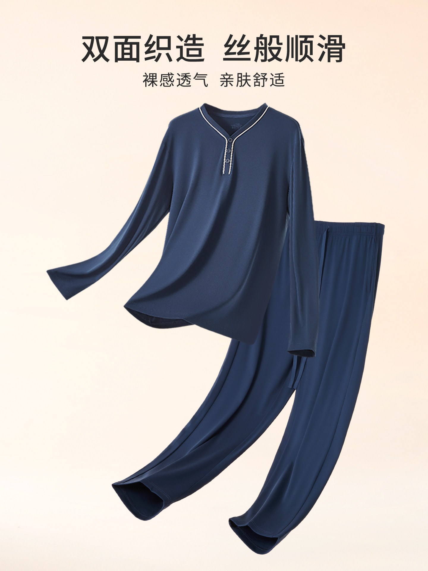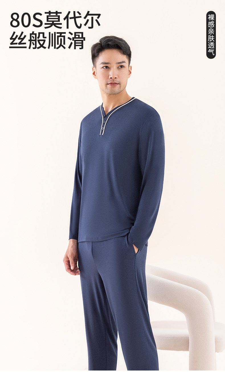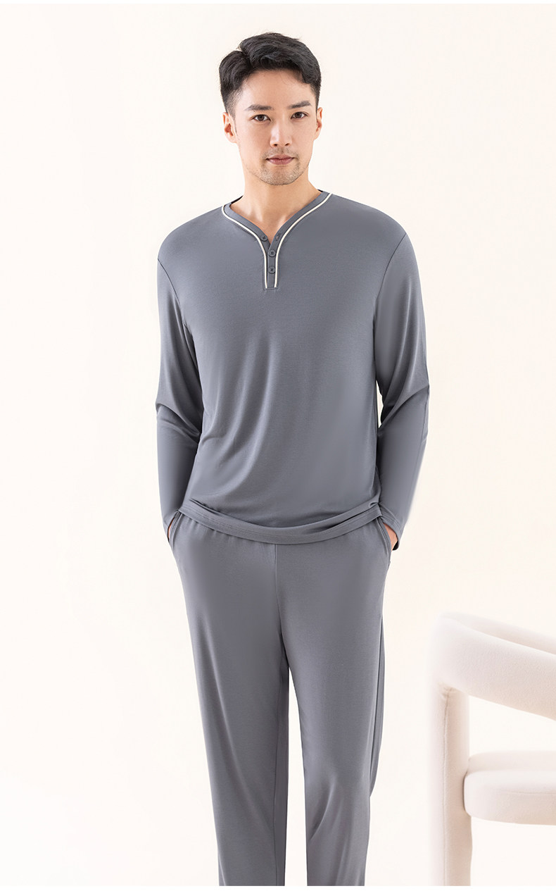 Мужская летняя пижама, тонкий лонгслив, комплект, V-образный вырез, большой размер