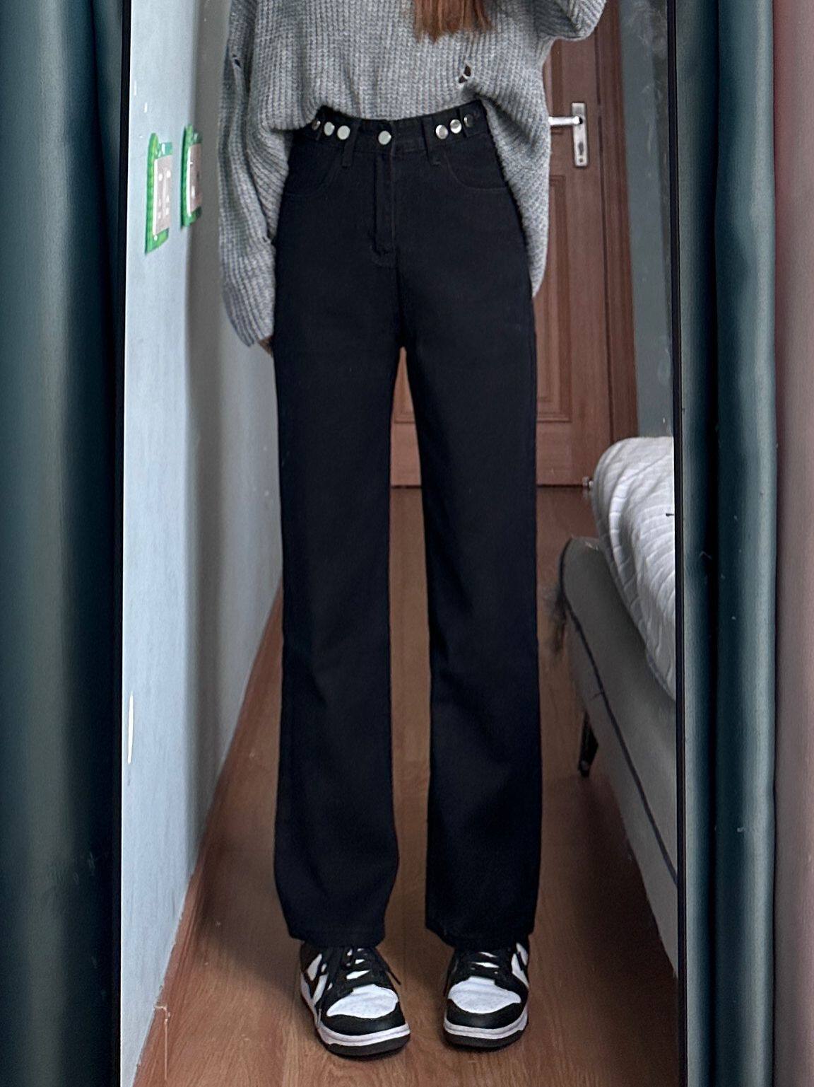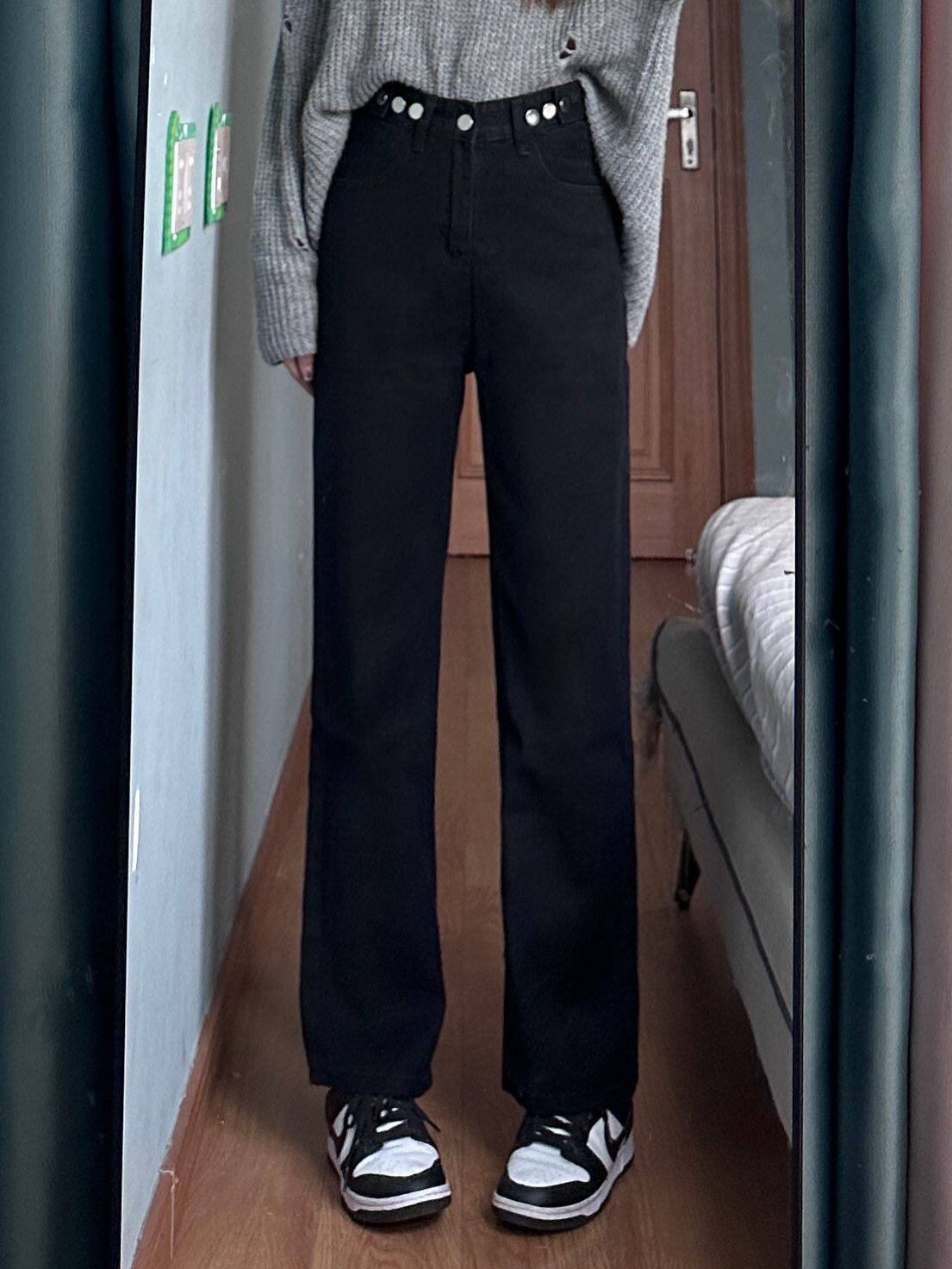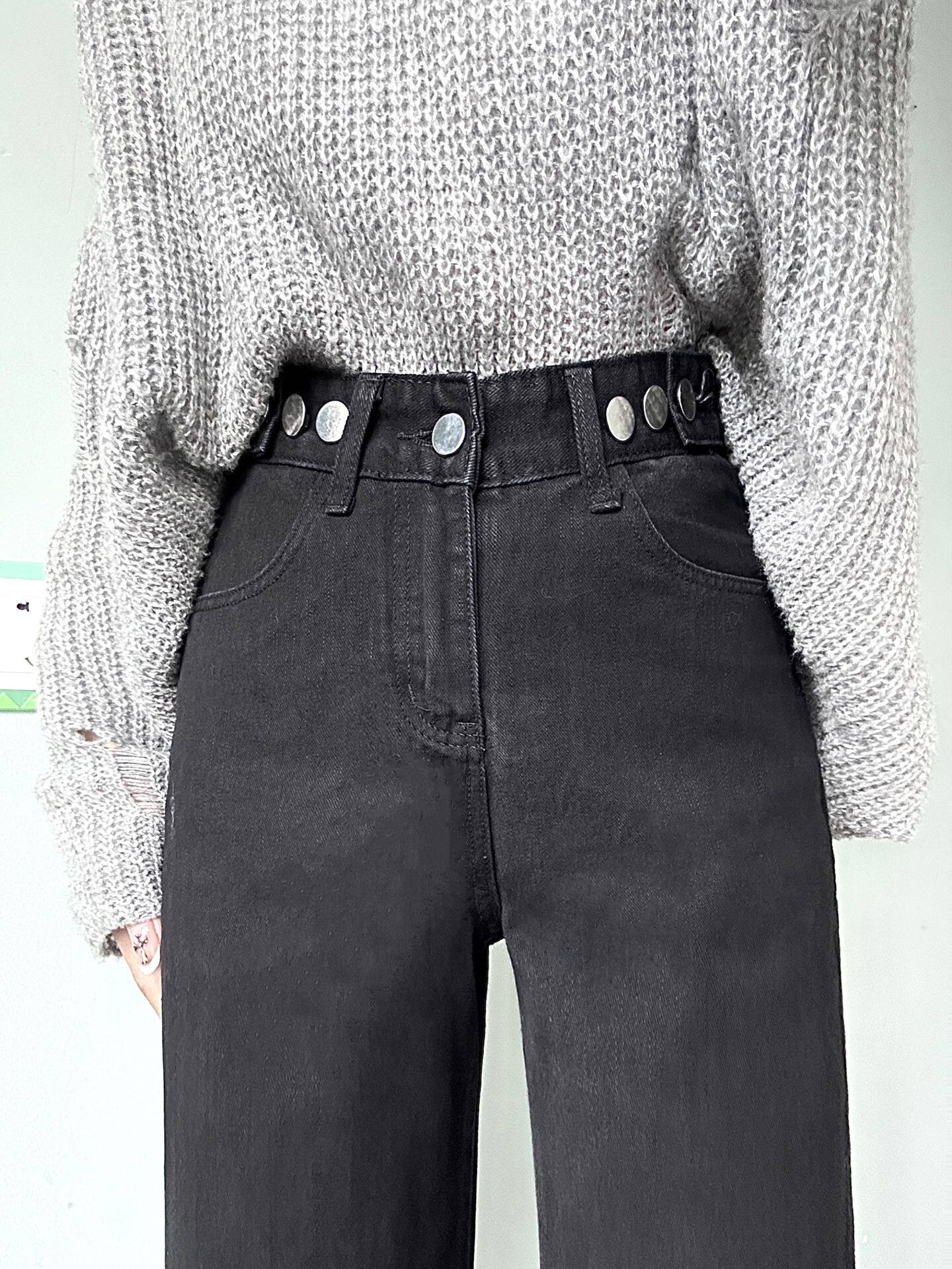 Приталенные джинсы, осенние черные штаны, высокая талия, свободный прямой крой, коллекция 2023, большой размер